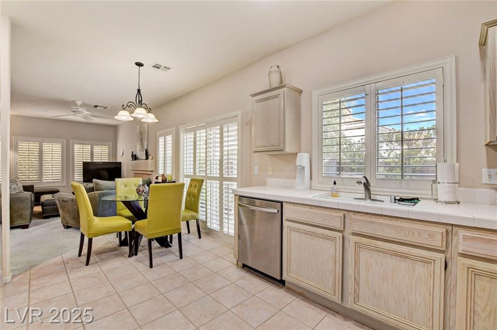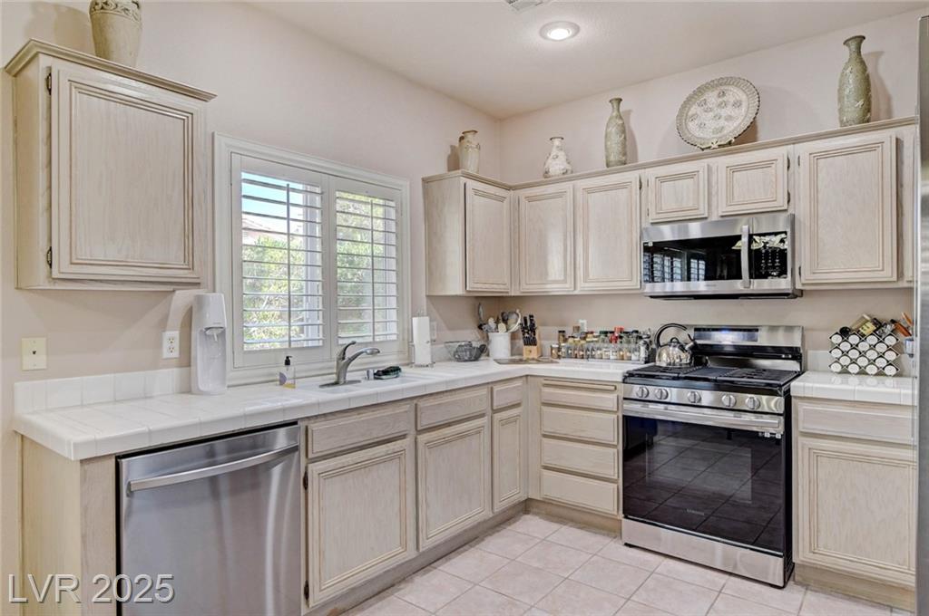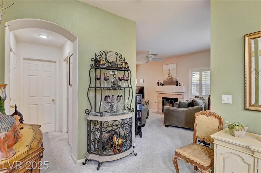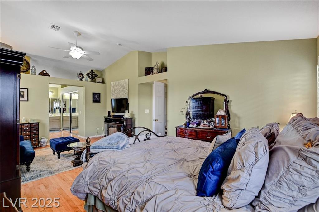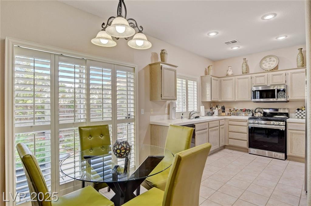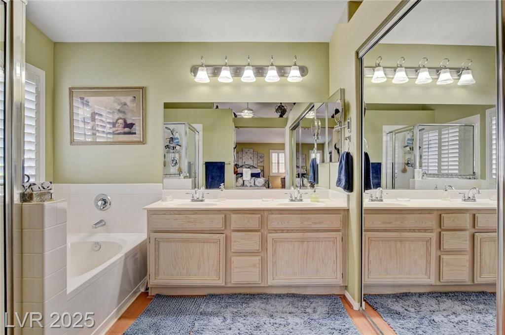 This 1992 sf, 2 level, 4 Bed, 3 bath home sits on a 5663 sf gated parcel located @ The Trails in Summerlin. Experience an airy, open feel as you enter into the flowing floorplan w soaring 25 ft high ceilings. A fine tuned, well lit spacious home providing abundant natural light & interior shutters on ALL windows. The stairs leads up new wood-like flooring stears you to the primary suite w retreat space. The primary bath featuring a large jetted soaking tub, H&H sinks, separate oversized shower w/i closet. This kitchen just got new stainless appliances, & it's positioned next to the backyard, great for entertaining friends & family. A formal dining room, 2 living / family rooms. The one w the fireplace is perfect for cozy nights w the family. The tranquil manicured backyard is great for morning coffee or relaxing evenings. Close to freeways, dining, shopping & entertainment, all in the heart of Summerlin. This floorplan is EXCELLENT...it's just waiting for your personal touches.