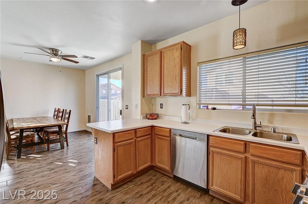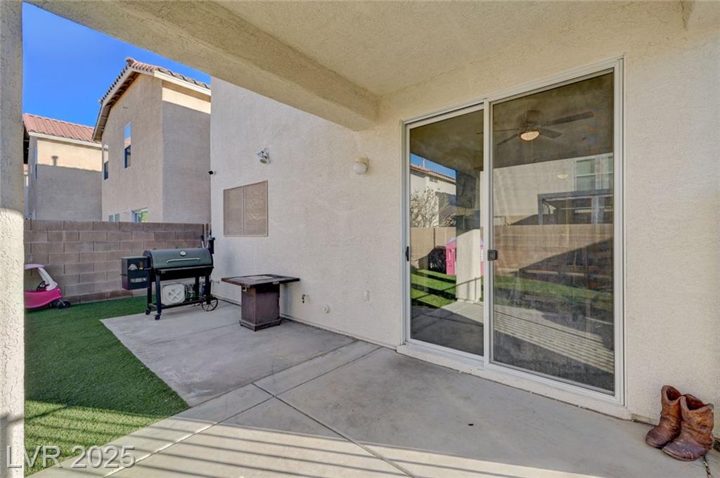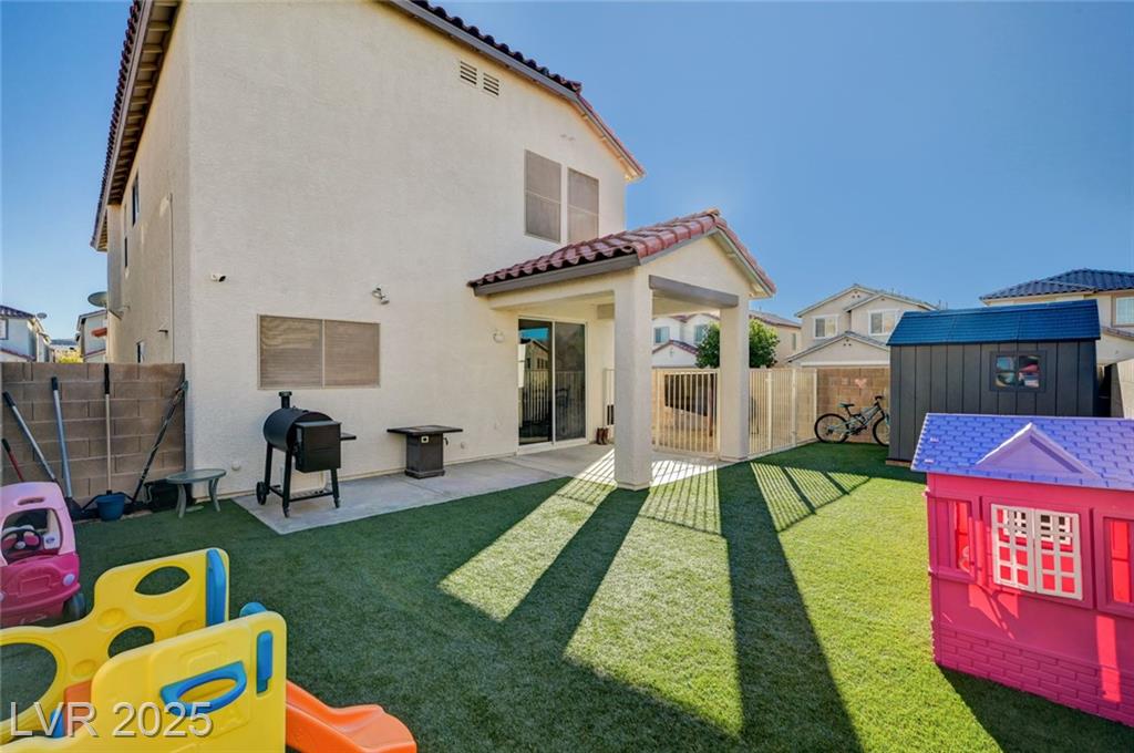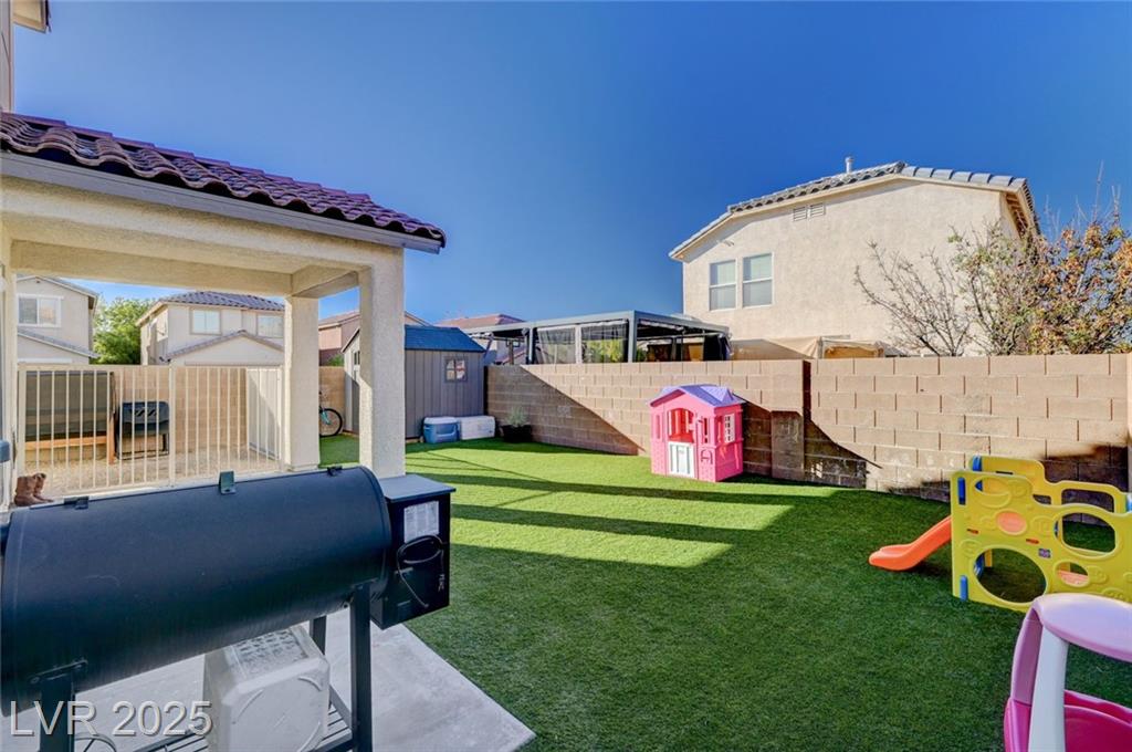 Located on the edge of Southern Highlands — without all the fees! This home features newer flooring, appliances, landscaping, and a freshly updated shower. The exterior was also just freshly painted as well. The popular floor plan offers 5 bedrooms plus a den, with an open-concept kitchen that flows into the living and dining areas. The spacious primary suite includes a huge walk-in closet and a brand-new custom shower. Additionally it includes solar for energy efficiency and a low-maintenance backyard with turf, a covered patio, and a prime corner-lot location.