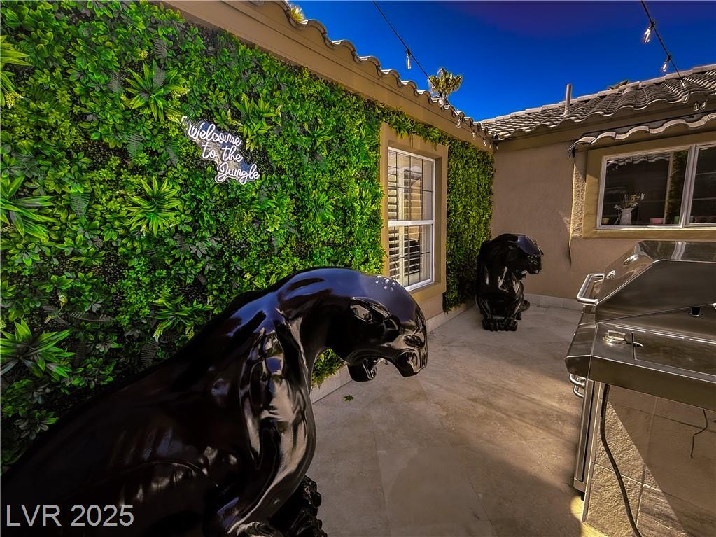 Exterior Description | Built-In Barbecue,Circular Driveway,Courtyard,Covered Patio,Enclosed Patio/Sun Room,Private Yard,Secured Entry,Shed |