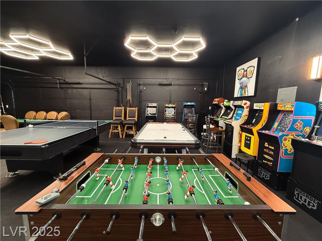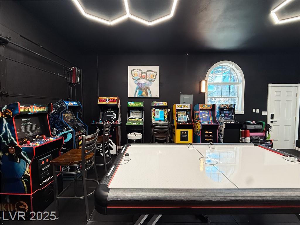 Incredible home with custom upgrades since purchasing in the historic section 10 neighborhood with no HOA! Completely private enclave with custom iron walls and 4 motorized gates that make this the ultimate private retreat. Raised backyard walls, new oversized spa, upgraded pool, with Pentair equipment, upgraded front courtyard with privacy iron walls, paint, curtains, pentair pool equipment, world class converted garage with a/c and thousands in flooring. Center atrium with built in bbq, converted garage with a/c for games and exercise, lighting, paint, framework, doors, keyless entry and more! This can be anywhere from a 4br to 7br home depending on your needs. Primary and junior suites. Built in fireplaces. Shed, RV Parking, Tesla EV charging station, custom cabinets, granite counters, stainless steel appliances. A complete dream home for any family who wants to live a resort style lifestyle. All furnishings and games are negotiable.