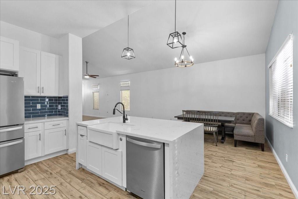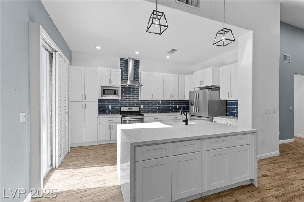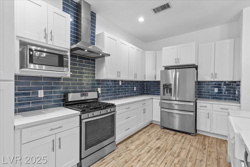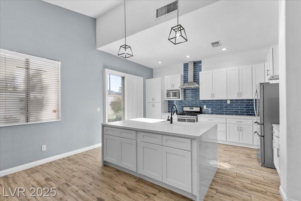 Welcome to this stunning single story home nestled in the heart of Green Valley. Boasting three spacious bedrooms, a three car garage, and thoughtfully designed living spaces, this home offers both comfort and style. Step into the open-concept floorplan that seamlessly connects the living, dining, and kitchen areas perfect for entertaining and modern living. The upgraded kitchen is a chef’s dream, featuring sleek stainless steel appliances, elegant shaker-style cabinets, a large center island, and designer lighting that adds a warm, sophisticated touch. Retreat to the expansive master suite, complete with a luxuriously upgraded bathroom, including a walk-in shower, dual vanities, and premium finishes. Enjoy indoor outdoor living with beautifully maintained landscaping, creating a peaceful oasis in the lush surroundings of Green Valley. With its exceptional features and prime location, this home is a rare find that combines luxury, function, and charm in one perfect package.
