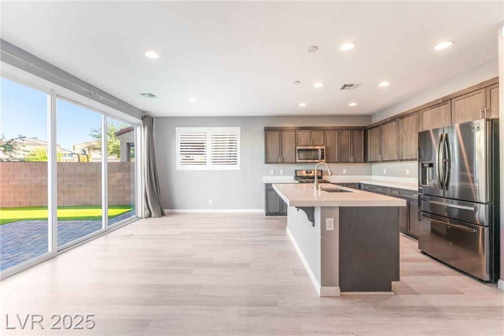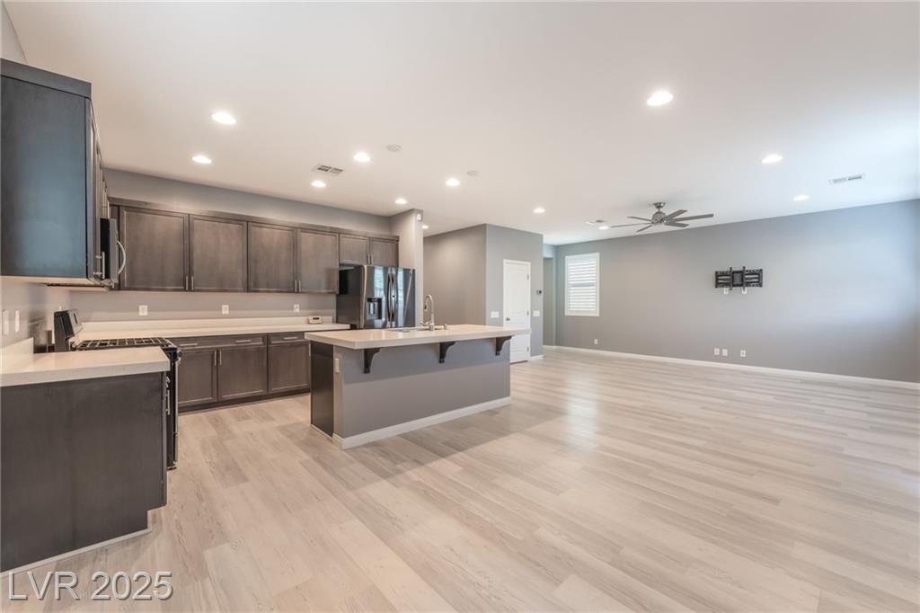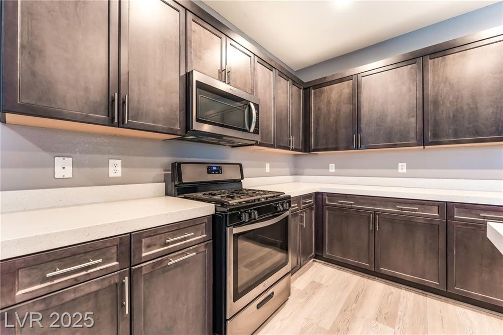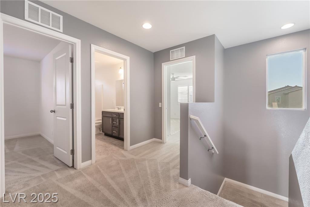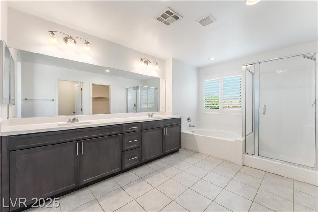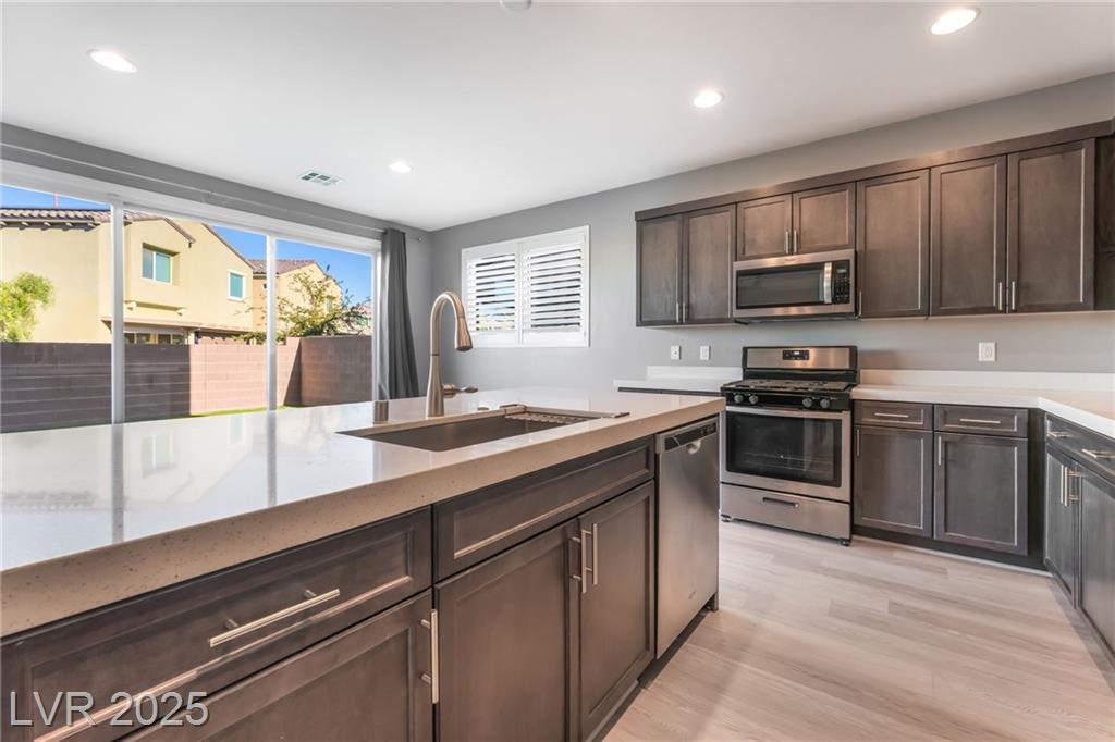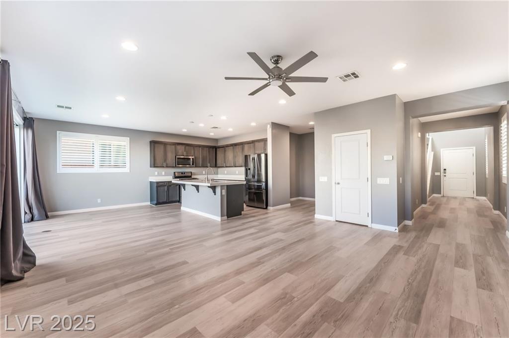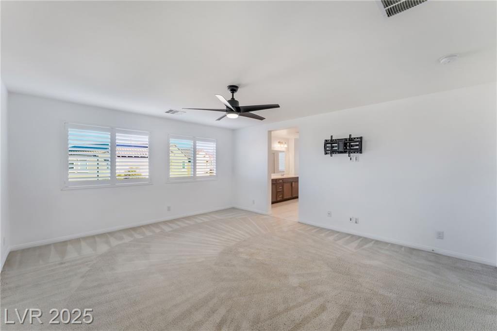 Modern elegance meets everyday comfort in this stunning 4-bedroom, 3-bath home with a spacious loft, located in a gated Northwest community. Thoughtfully designed, the floor plan features a convenient downstairs bedroom and full bathroom—ideal for guests or multigenerational living. The open-concept layout highlights quartz countertops, upgraded cabinetry, luxury vinyl flooring, and soothing neutral tones throughout. Custom paint, brand-new shutters, and ceiling fans in every room enhance both style and livability. All appliances are included, making it move-in ready from day one. Step outside to a private backyard with turf and low-maintenance landscaping, with no homes directly behind for added privacy. Perfectly positioned near the VA hospital, the 215 freeway, shopping, and dining—this home offers the perfect balance of sophistication, comfort, and accessibility in one of the Northwest’s most desirable gated neighborhoods.