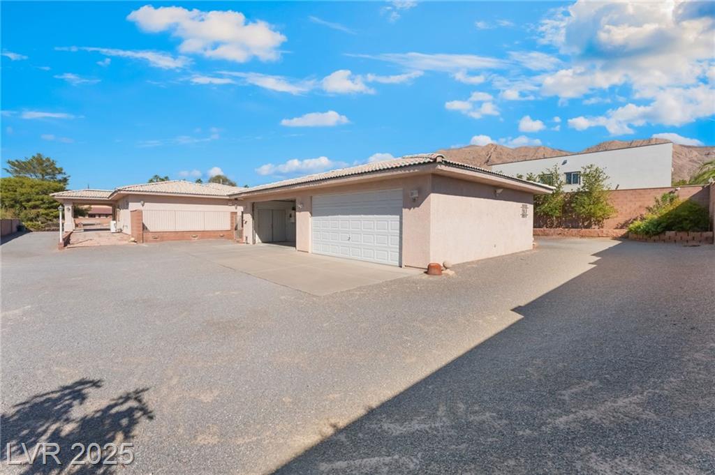 Custom Single story gem in the Sunrise Mountain area. Mountain and Strip views. NO HOA, 4 Bedroom, 4 Bathroom spacious home with formal living room, dining room, great/family room and a den/office with a covered courtyard. Large separate studio with sink and separate air conditioner unit. Four car garage, RV parking, circular front yard drive way and much more.