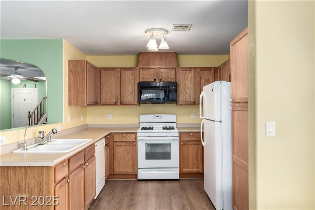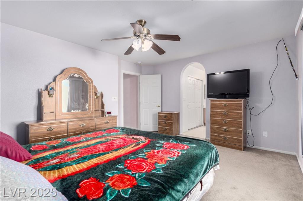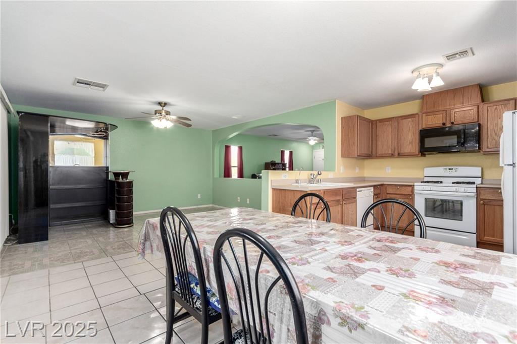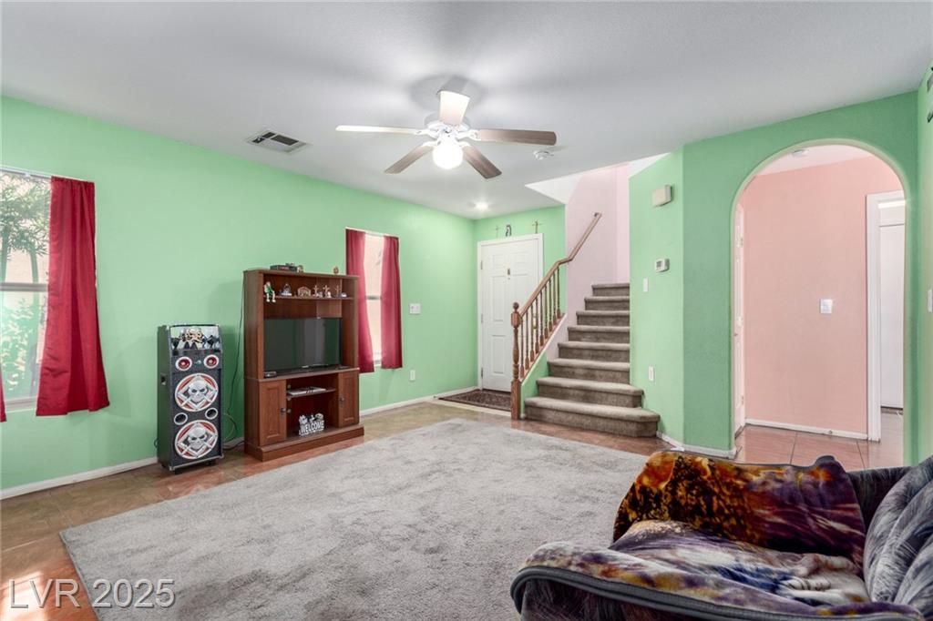 Fantastic two-story home in Riverwalk is a must-see! Nestled on a cul-de-sac with no neighbors on one side, providing extra privacy. This gem offers 5 beds, 3 baths, a 2-car garage, and a mature landscape. The inviting interior showcases tons of natural light, a designer palette, tile flooring downstairs, and soft carpet upstairs. Featuring separate living and family rooms, you have versatile spaces for gatherings. The eat-in kitchen has built-in appliances, track lighting, ample wood cabinetry, and sliding doors to the back. One bedroom and one bathroom complete the downstairs. Head onto the upper level to find the large main bedroom, boasting a full bathroom with dual sinks. Enjoy the mountain views from the upstairs windows! Let's not forget the private and tranquil backyard, where you can relax or enjoy BBQ! A covered patio, a shade tree, and additional seating areas complete the picture. Conveniently minutes away from parks, shopping, restaurants, and much more. Home, sweet home!