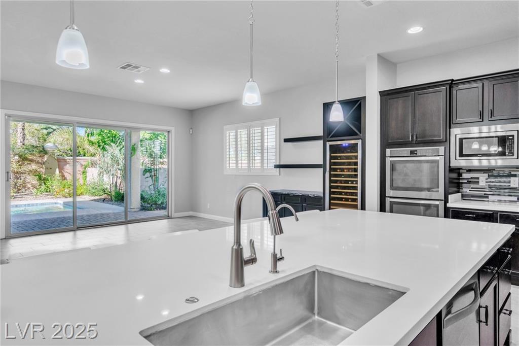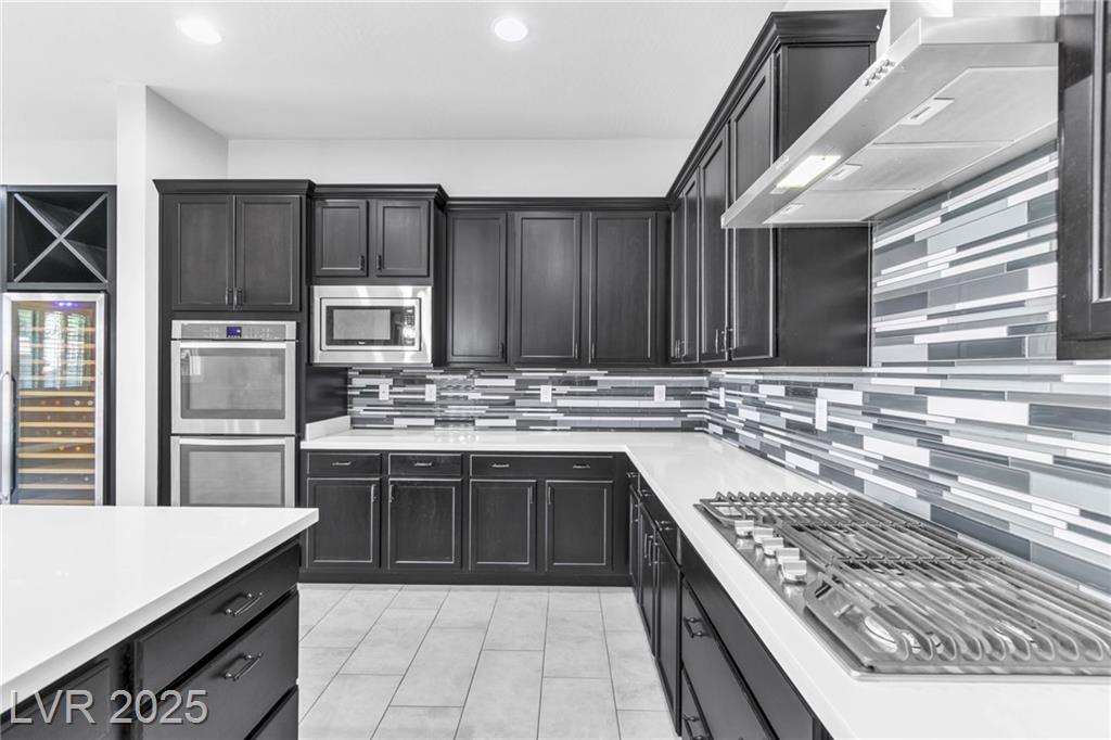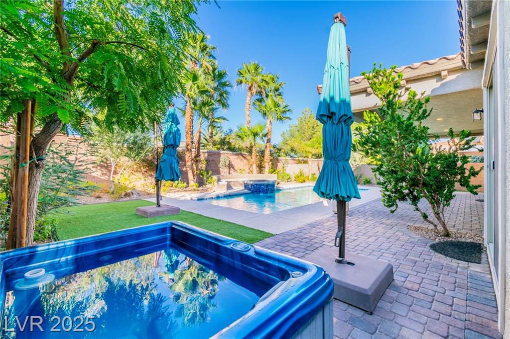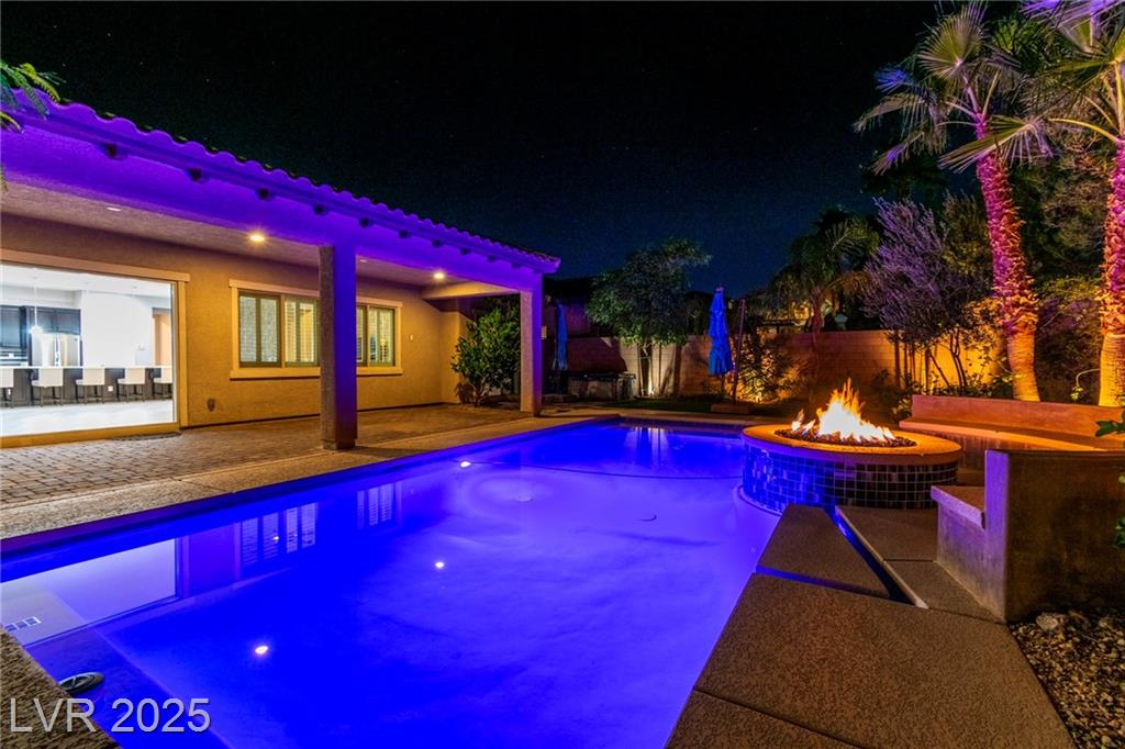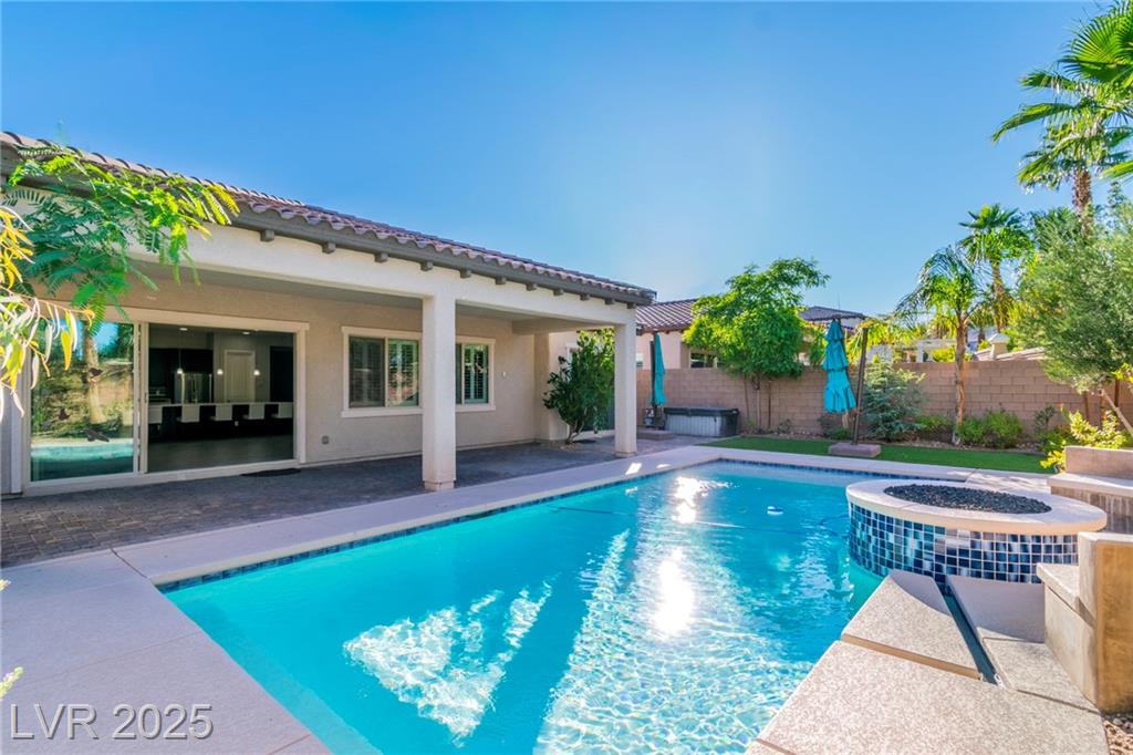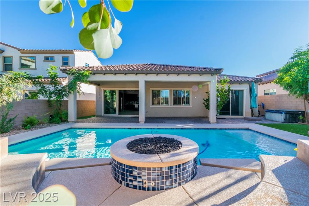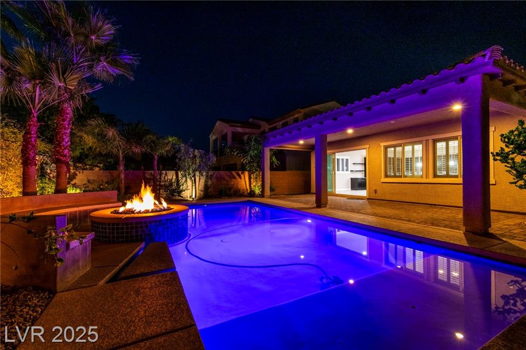 Double Guard gated Rhodes Ranch this exceptional home is located within the exclusive “Estates”& features a grand great room centered around a stunning 16-foot quartz island with seating for eight. The chef’s kitchen offers premium appliances, including double ovens and a 100-bottle wine refrigerator. Expansive multi-slider doors open to a covered patio overlooking a resort-style backyard with pool, fire pit, lawn, and above-ground spa—perfect for seamless indoor-outdoor living. The spacious primary suite includes a barn wood feature wall, spa-inspired bath, & impressive walk-in closet with built-ins. Additional highlights include elegant tile flooring, a mudroom with cabinetry, & a split 2+1 car garage with EV charger. With ten-foot ceilings, designer window treatments, and refined custom upgrades throughout, this home embodies timeless luxury. Schedule your visit today. COMMUNITY POOL, GYM ,WATER PARK, PICKLE BALL, TENNIS COURTS, RAQUET & BASKET BALL** WONT LAST***SOLAR PAID OFF**