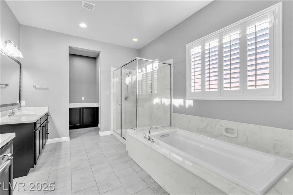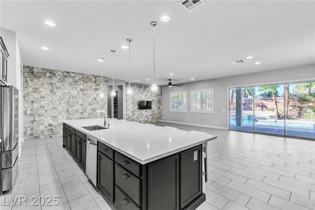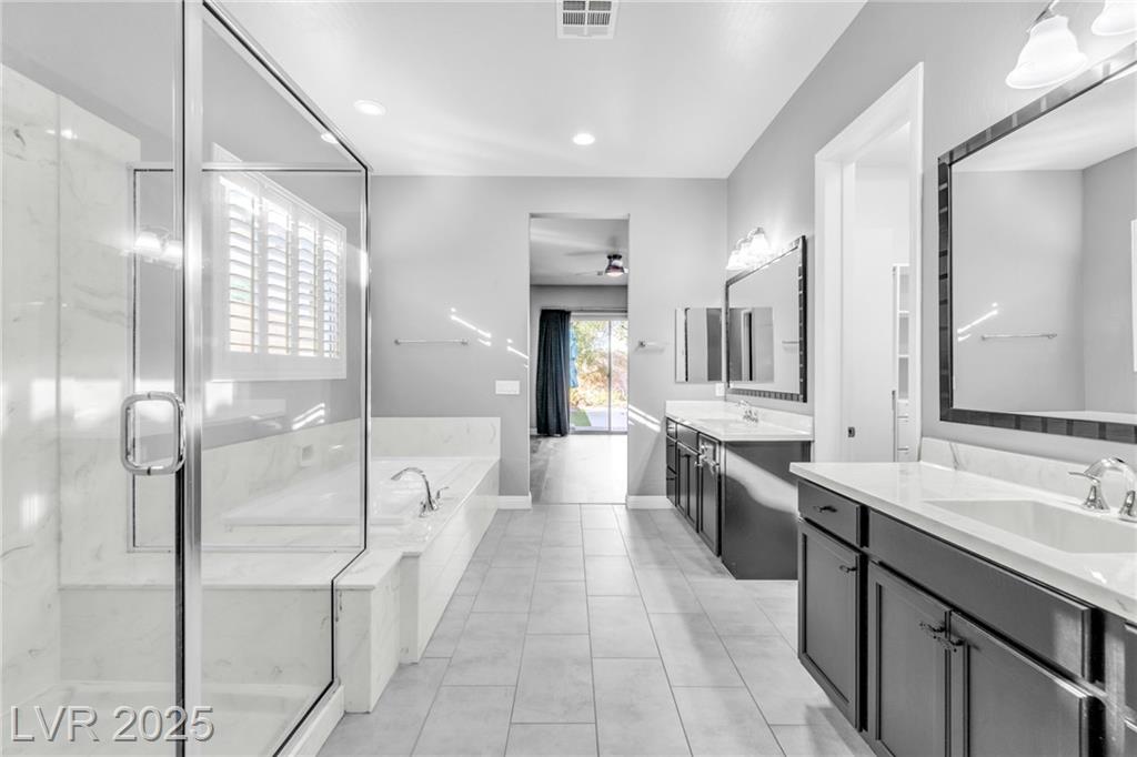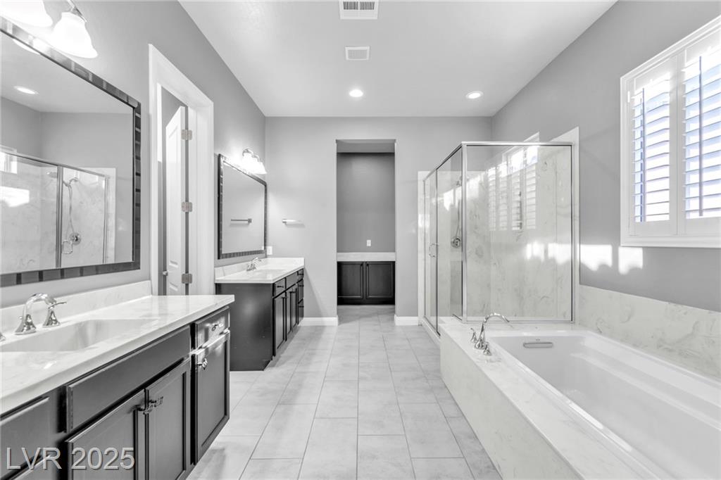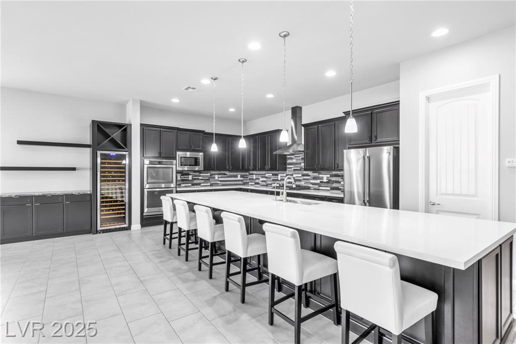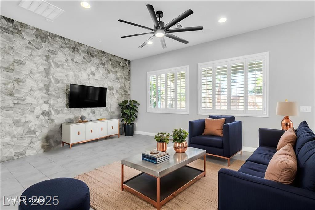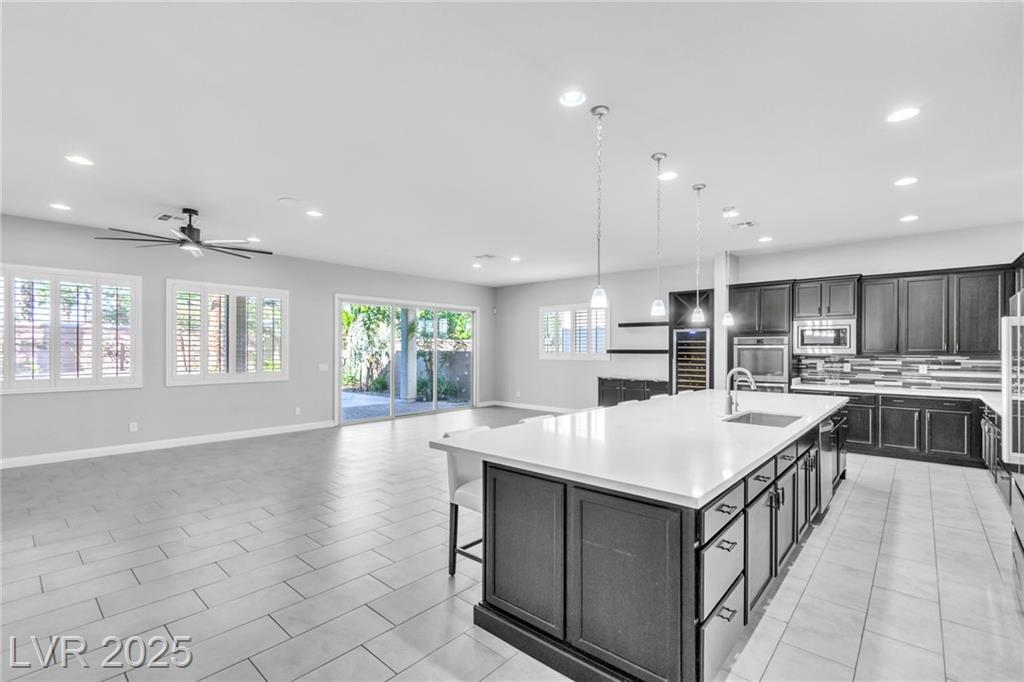 Double Guard gated Rhodes Ranch this exceptional home is located within the exclusive “Estates”& features a grand great room centered around a stunning 16-foot quartz island with seating for eight. The chef’s kitchen offers premium appliances, including double ovens and a 100-bottle wine refrigerator. Expansive multi-slider doors open to a covered patio overlooking a resort-style backyard with pool, fire pit, lawn, and above-ground spa—perfect for seamless indoor-outdoor living. The spacious primary suite includes a barn wood feature wall, spa-inspired bath, & impressive walk-in closet with built-ins. Additional highlights include elegant tile flooring, a mudroom with cabinetry, & a split 2+1 car garage with EV charger. With ten-foot ceilings, designer window treatments, and refined custom upgrades throughout, this home embodies timeless luxury. Schedule your visit today. COMMUNITY POOL, GYM ,WATER PARK, PICKLE BALL, TENNIS COURTS, RAQUET & BASKET BALL** WONT LAST***SOLAR PAID OFF**