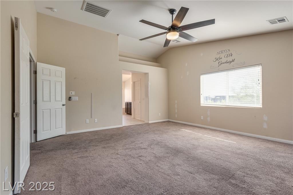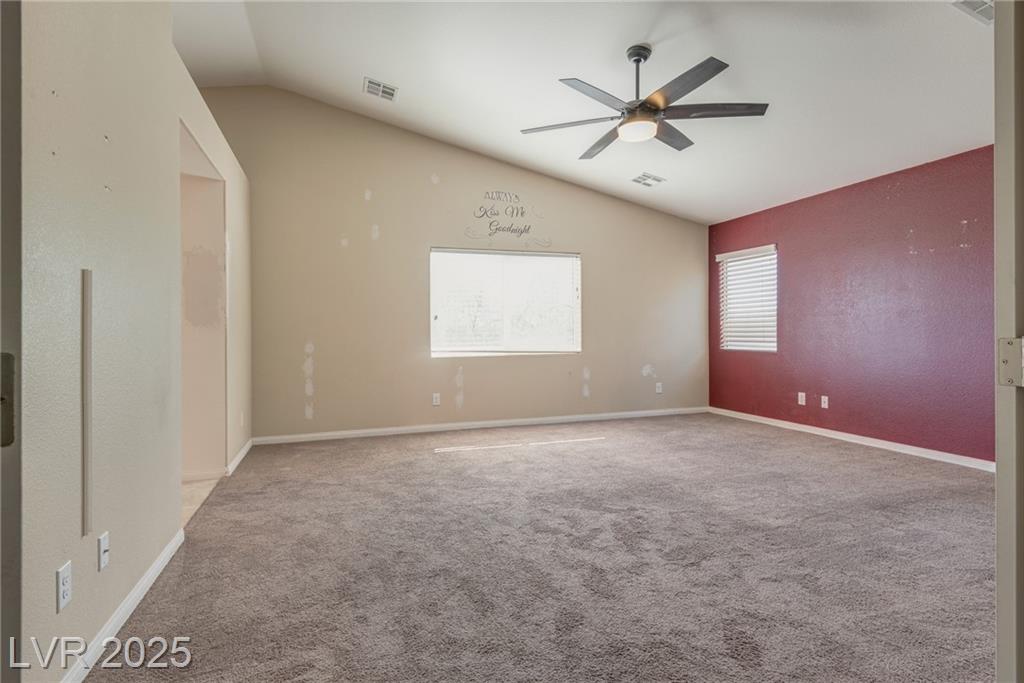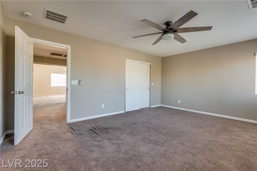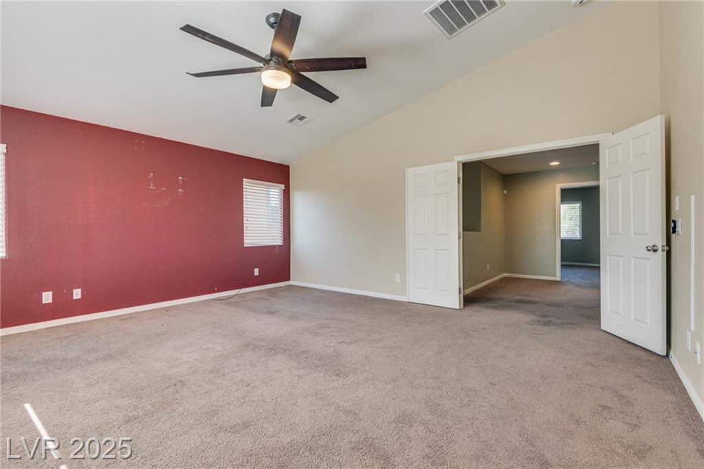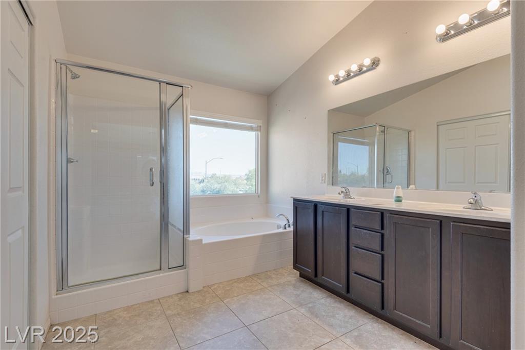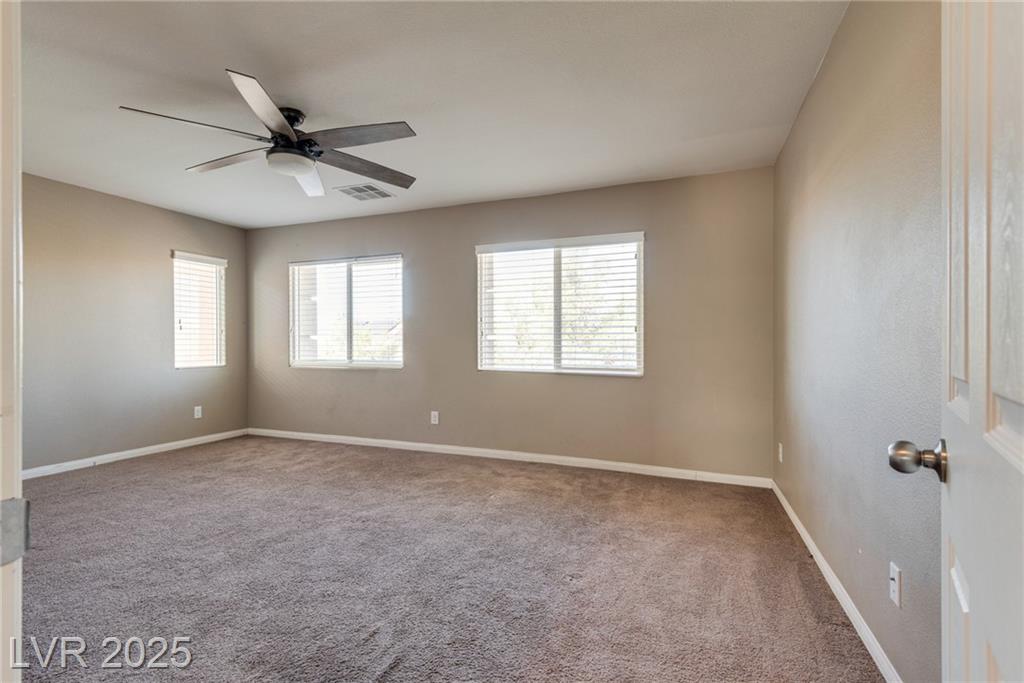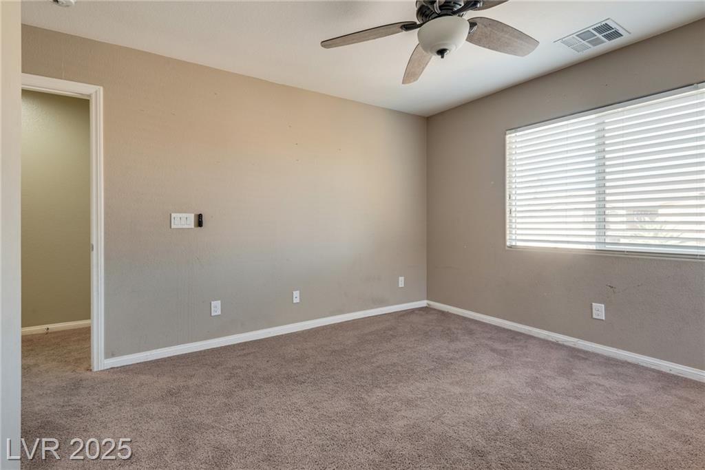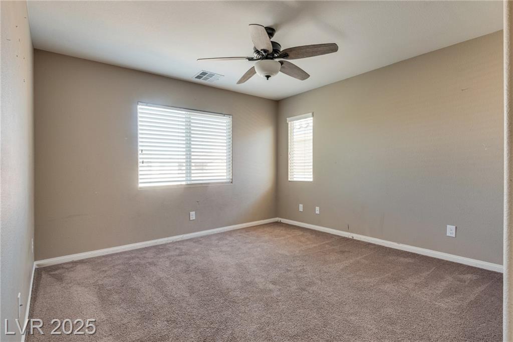 Welcome to this spacious 5-bedroom, 3-bath home nestled in the gated Tropical Sands community of North Las Vegas. With nearly 2,907 sq. ft. of living space, this two-story residence offers room for everyone. The open-concept floor plan features a formal living room, separate family room, and dining area—perfect for entertaining. The kitchen is designed with functionality in mind, complete with a pantry and modern appliances. Upstairs, the oversized primary suite boasts a walk-in closet and luxurious bath with dual sinks, a separate tub, and a shower. Secondary bedrooms are generously sized, including a rare downstairs bedroom and full bath ideal for guests or multi-gen living. Outside, enjoy a private backyard with a covered patio, easy-care landscaping, and low-maintenance synthetic turf. Located on a cul-de-sac lot near shopping, dining, and major freeways, this home combines comfort, space, and convenience—all with the security of a gated neighborhood