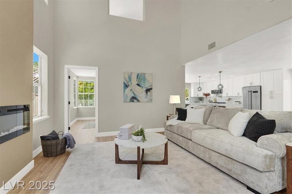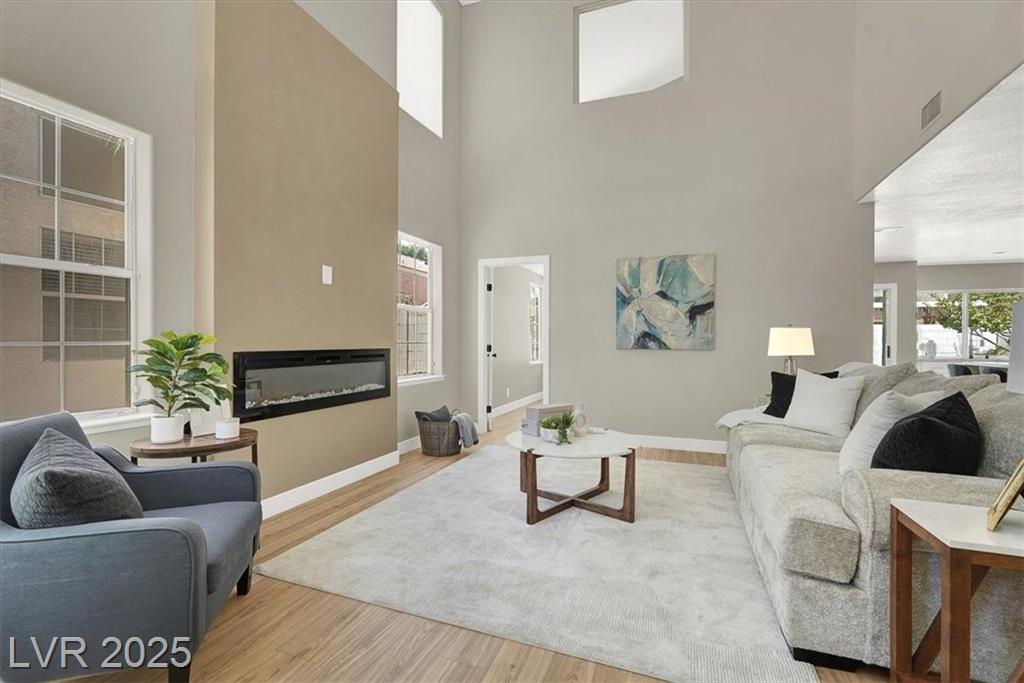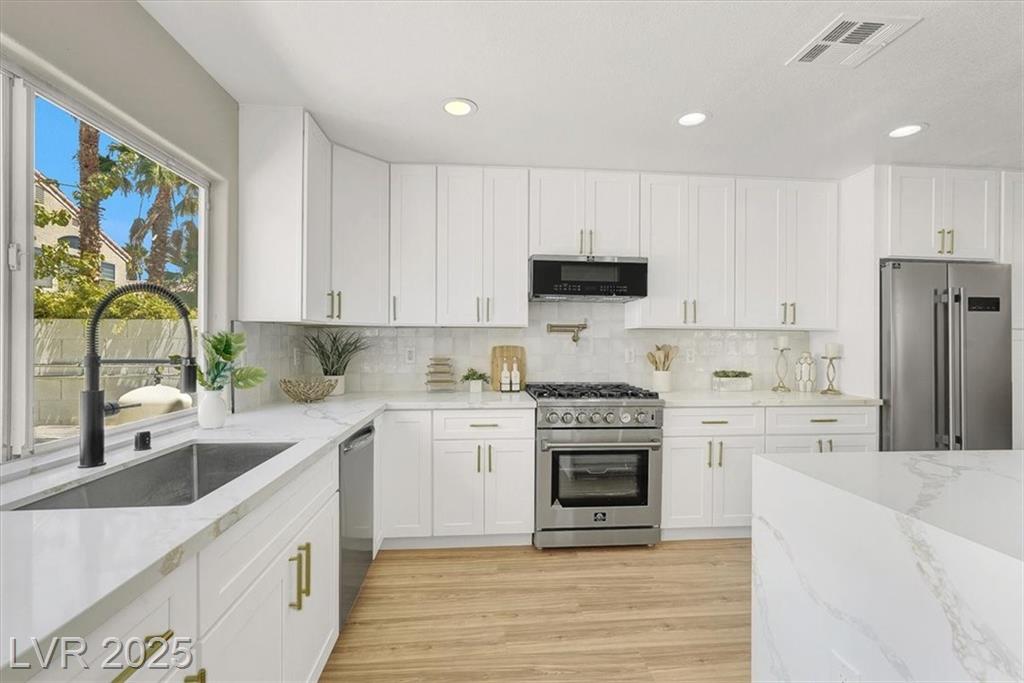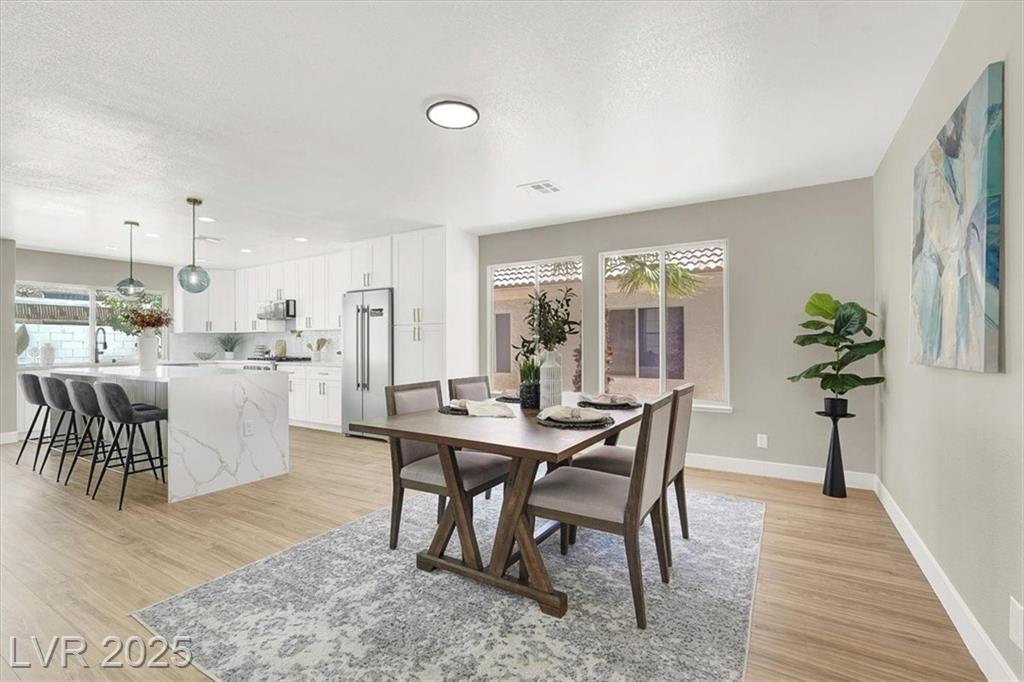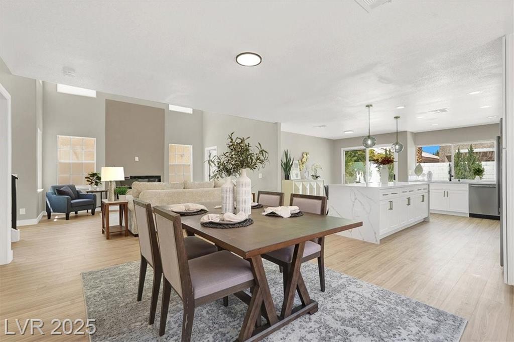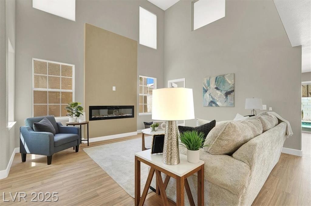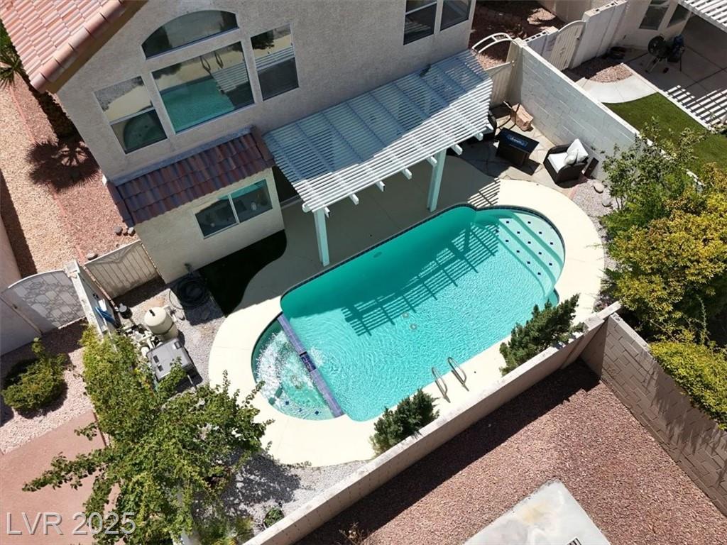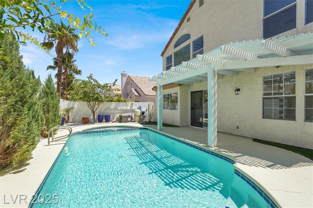 Experience modern resort-style living in South Shores! This beautifully remodeled two-story pool home blends bright open spaces, designer finishes, and a private backyard oasis perfect for entertaining. Enjoy a sleek kitchen with waterfall-edge island, quartz counters, custom cabinetry, and stainless steel appliances. Upstairs, the spacious primary suite offers a spa inspired bath and walk-in closet. Downstairs includes a flexible bedroom or office and stylish modern flooring throughout. Step outside to your sparkling heated pool, covered patio, and low-maintenance landscape made for outdoor enjoyment. Located minutes from Desert Shores lakes, walking paths, and dining ,this move-in-ready home delivers comfort, function, and style in one of Las Vegas’s most sought after communities. Recent updates include new AC, lighting, and interior/exterior paint. Just Listed — Fully Remodeled with Pool