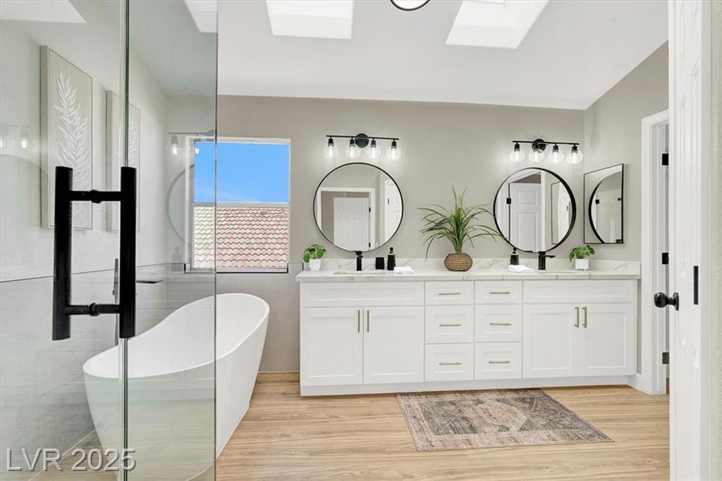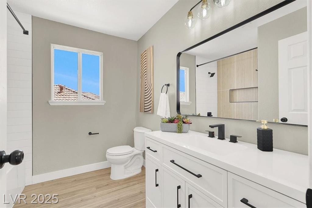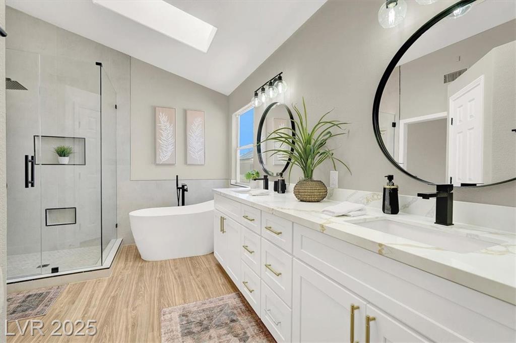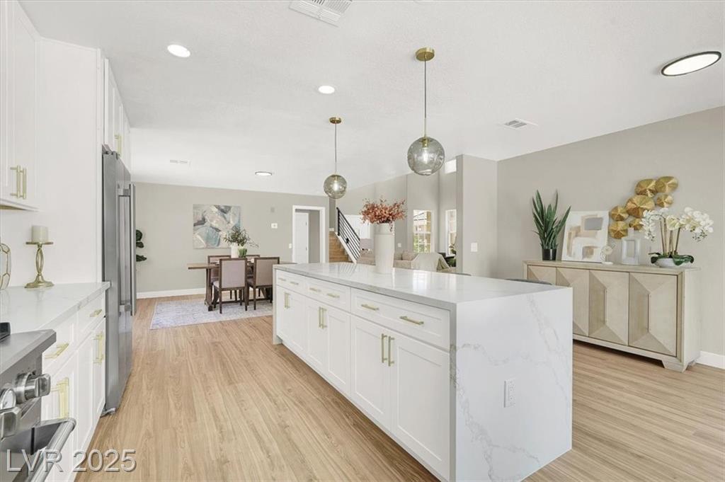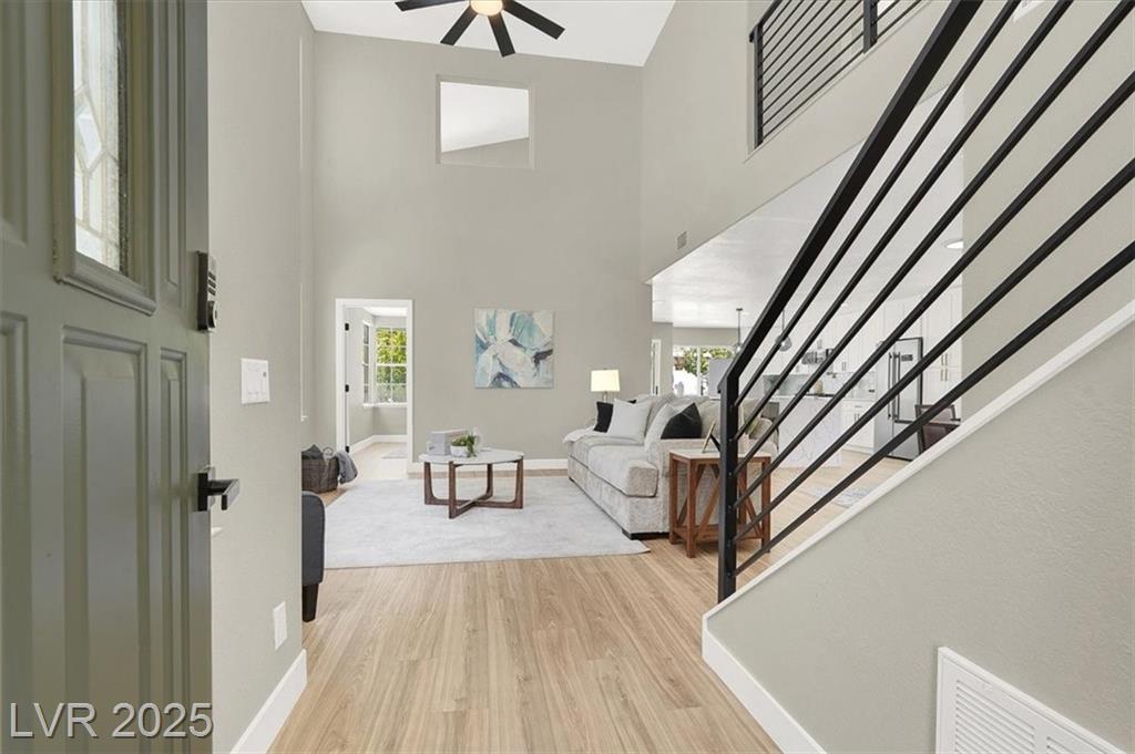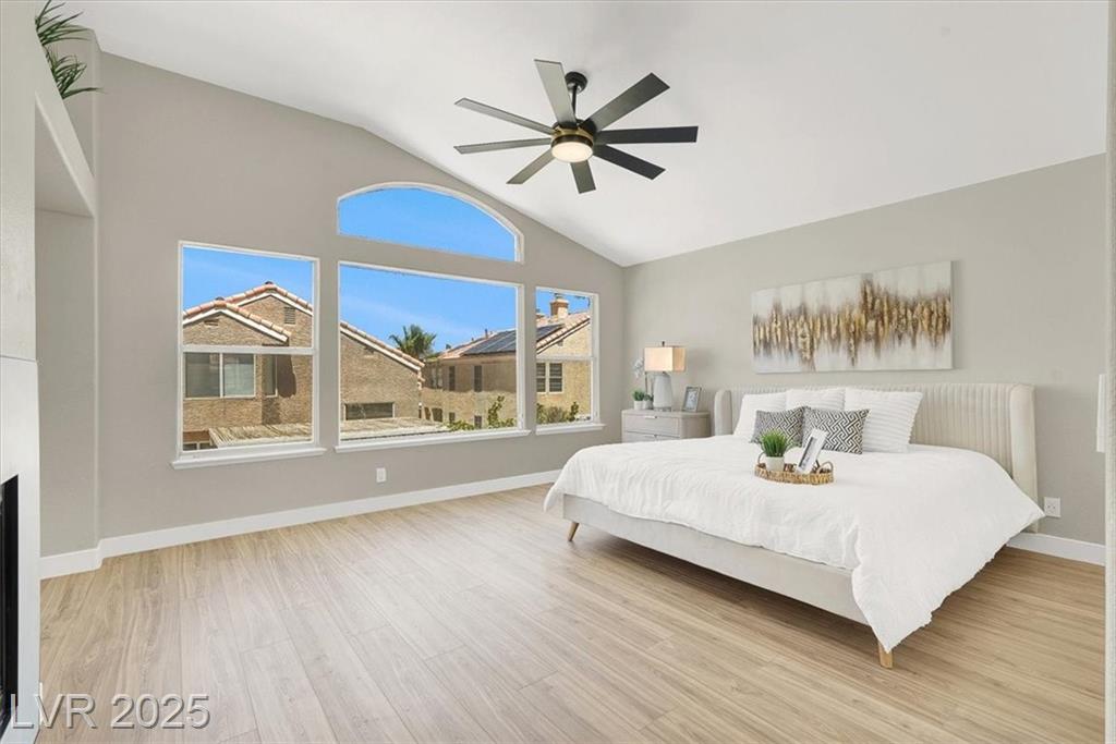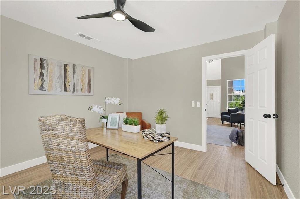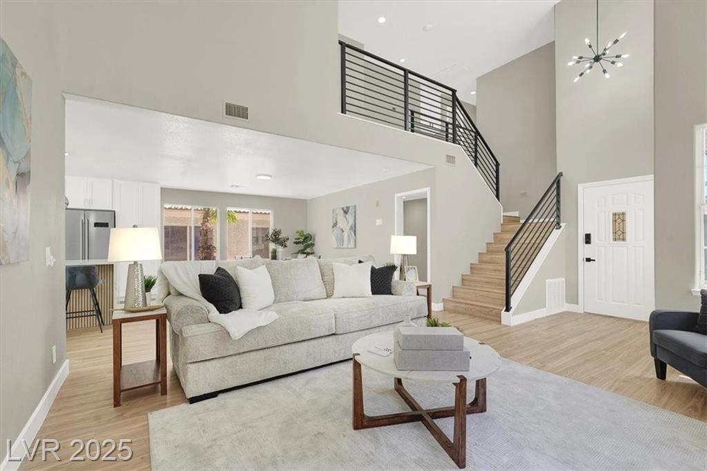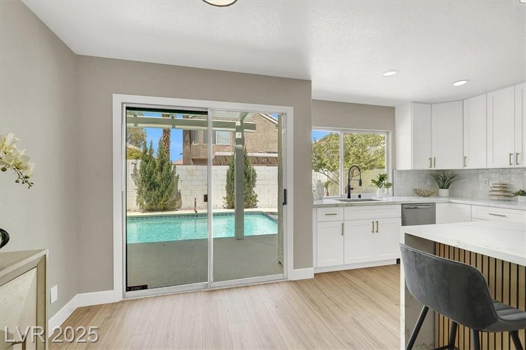 Experience modern resort-style living in South Shores! This beautifully remodeled two-story pool home blends bright open spaces, designer finishes, and a private backyard oasis perfect for entertaining. Enjoy a sleek kitchen with waterfall-edge island, quartz counters, custom cabinetry, and stainless steel appliances. Upstairs, the spacious primary suite offers a spa inspired bath and walk-in closet. Downstairs includes a flexible bedroom or office and stylish modern flooring throughout. Step outside to your sparkling heated pool, covered patio, and low-maintenance landscape made for outdoor enjoyment. Located minutes from Desert Shores lakes, walking paths, and dining ,this move-in-ready home delivers comfort, function, and style in one of Las Vegas’s most sought after communities. Recent updates include new AC, lighting, and interior/exterior paint. Just Listed — Fully Remodeled with Pool