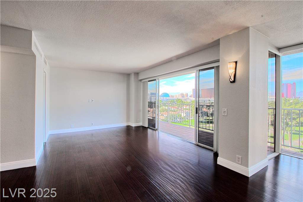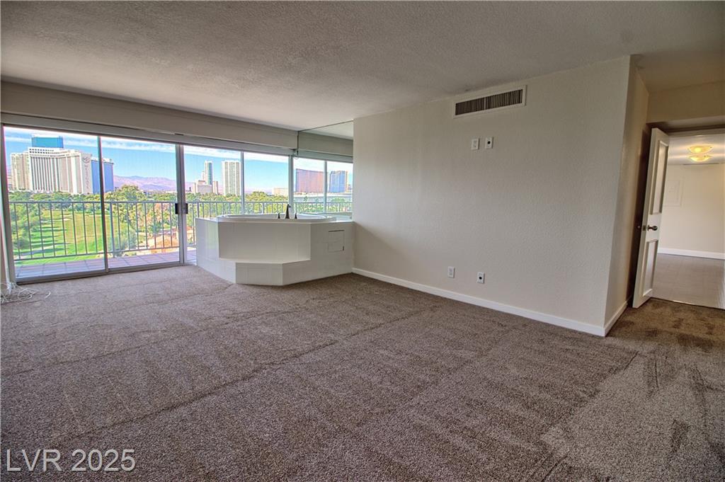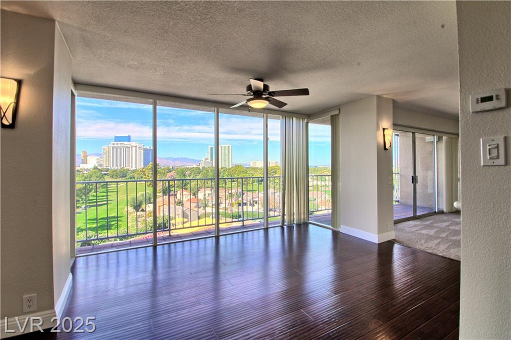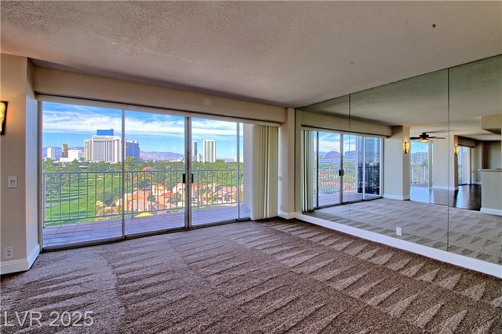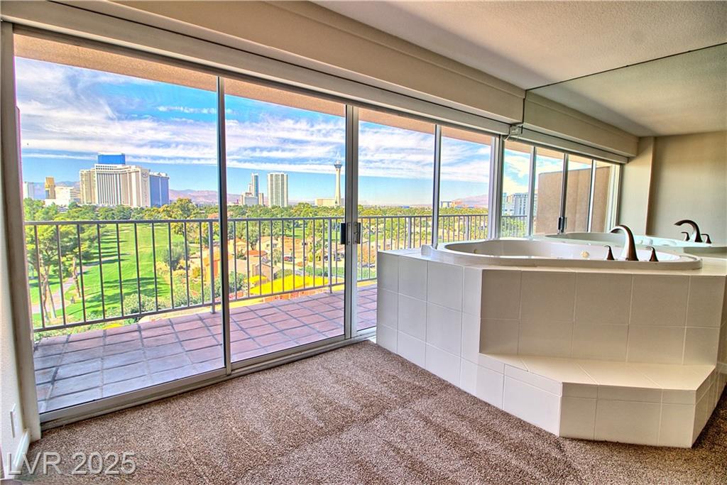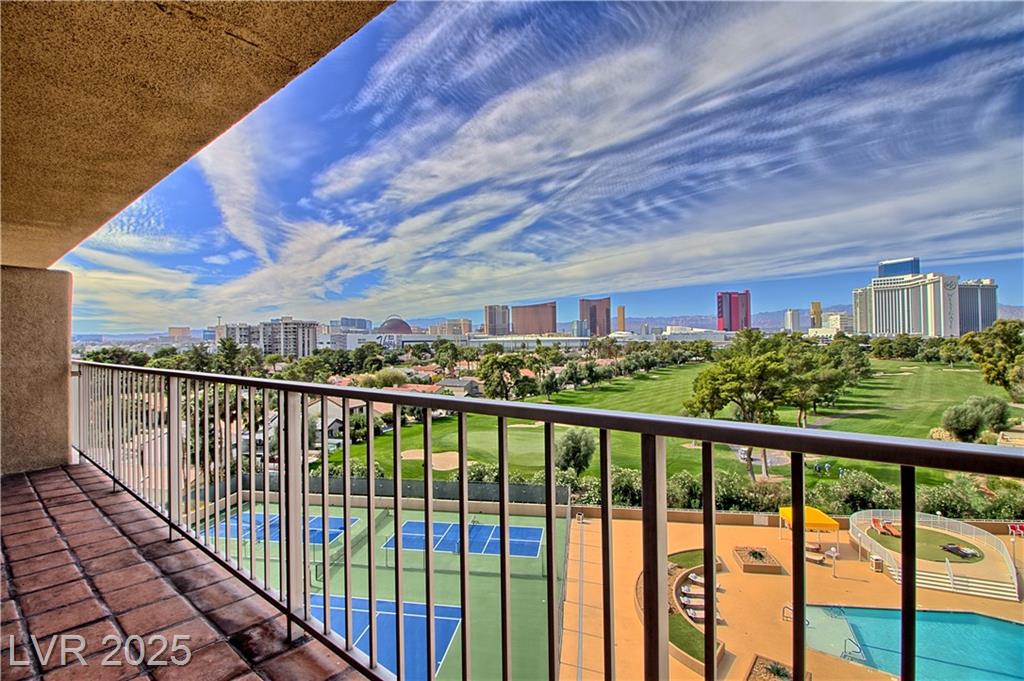 Elevated Living Just Minutes from the Las Vegas Strip. Views that will take your breath away! Wake up surrounded by sweeping views of the golf course, mountains, city lights, & the dazzling Strip, whether you’re relaxing in bed, enjoying dinner, or lounging on the couch. This stunning 8th-floor, two-bedroom is freshly updated with all new paint, and plush carpet. Kitchen featuring stainless steel appliances & breakfast bar. Expansive primary suite offers his/hers closets, plus a custom walk-in, a luxurious Jacuzzi tub perfectly positioned to capture those incredible views. The open floor plan flows seamlessly onto a balcony that spans the entire length of the unit, the perfect spot for cocktails at sunset or morning coffee above the city. Prestigious Regency Towers at the Las Vegas Country Club includes amenities with resort-style pool/cabanas, spa, tennis & pickleball courts, fitness center, & 24-hour guarded entry, minutes from world-class dining, casinos & entertainment.