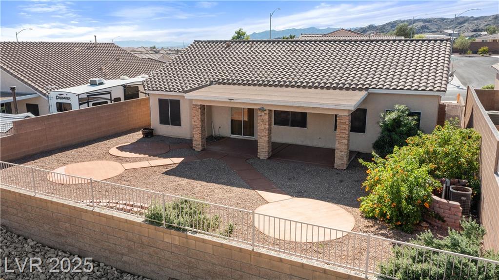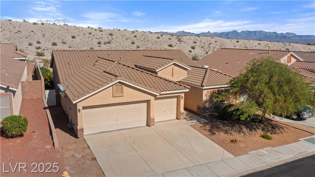 BILBRAY RANCH BEAUTY WITH BIG BACKYARD AND AIR CONDITIONED GARAGE! This 3-bedroom, 2-bath single-story home with an office/den offers open living, kitchen, and dining areas with a breakfast bar and walk-in pantry designed for everyday convenience. The primary suite has a tall vaulted ceiling and ensuite full bath with dual sinks, walk-in shower, stand-alone tub, and a comfortable walk-in closet. Enjoy outdoor living in the fully fenced backyard with a covered patio ideal for gatherings or quiet evenings. The 3-car garage offers climate controlled storage ready for all your river or desert toys! Located in Laughlin's newest and most desirable community - BILBRAY RANCH. Close to the Colorado River, Laughlin casinos, shopping, and dining, this home delivers both comfort and location. Experience the best of desert living and enjoy Nevada’s NO STATE INCOME TAX today.
