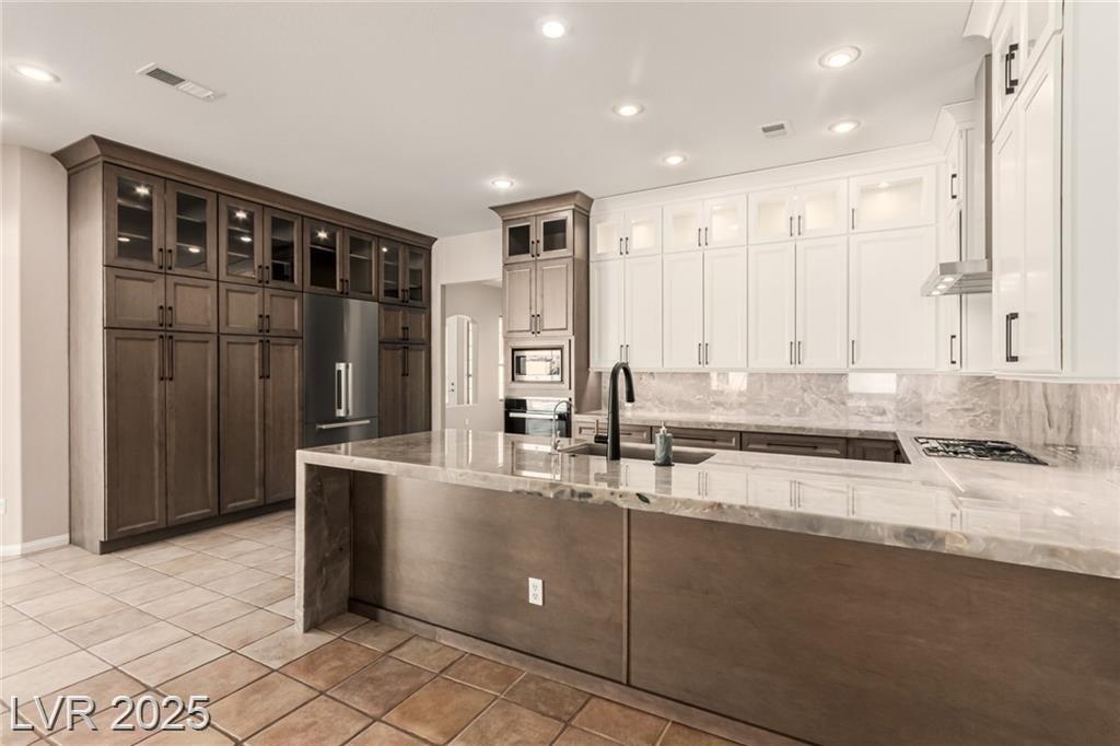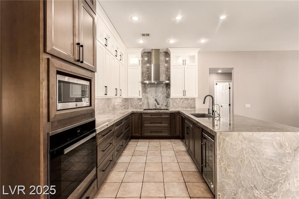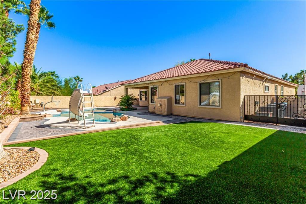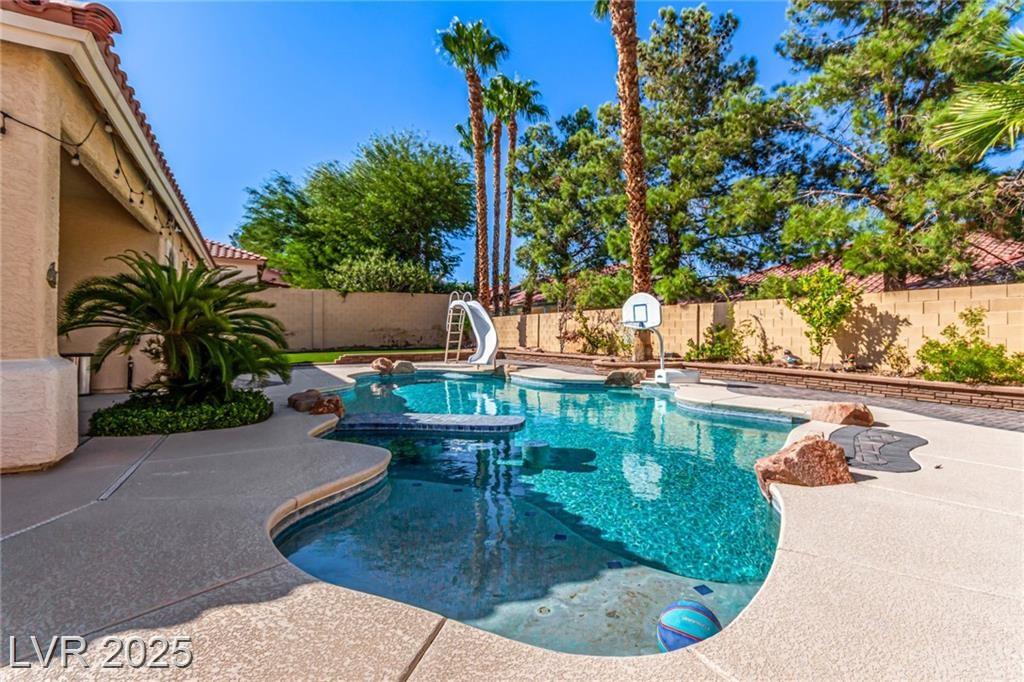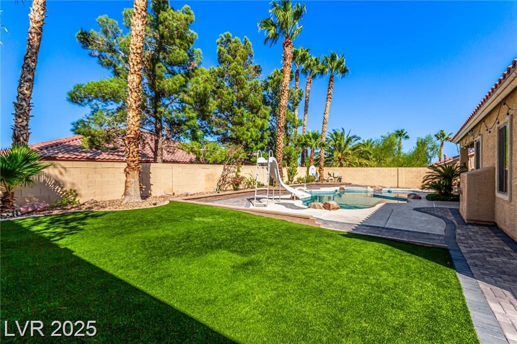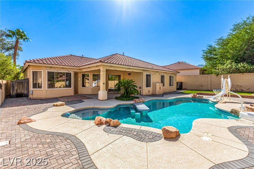 Discover Modern Luxury in this Absolutely Stunning Single-Story Home Nestled on a Cul-De-Sac in the Desirable Highpointe Community in Summerlin. Priced Below Appraised Value!! This Spacious Residence sits on a 0.25 Acre with Lush Landscaping and a Solar-Heated Pool! The Open Floor Plan Flows from a Newly Upgraded Kitchen to a Bright Family Room with Fireplace, Enhanced by Vaulted Ceilings. The Gourmet Kitchen Features Undermount Lighting, Lighted Glass Cabinets, Large Peninsula with Waterfall Counters, Wine Fridge, Farmer’s Sink, and High-End Miele Appliances! The Primary Suite Includes a Sitting Area, Expansive Walk-in Closet with Built-ins, Shuttered Windows, and a Spa-Inspired En-Suite Bath a Jetted Tub and His-and-Sers Sinks. Other Features Include a RO System,Water Filtration, Tankless Water Heater, and Newer HVAC System. Backyard Oasis that Features Artificial Turf & Covered Patio. Fantastic Schools Nearby, and Close to all Summerlin Amenities, Shopping, Parks, and Golf Courses.