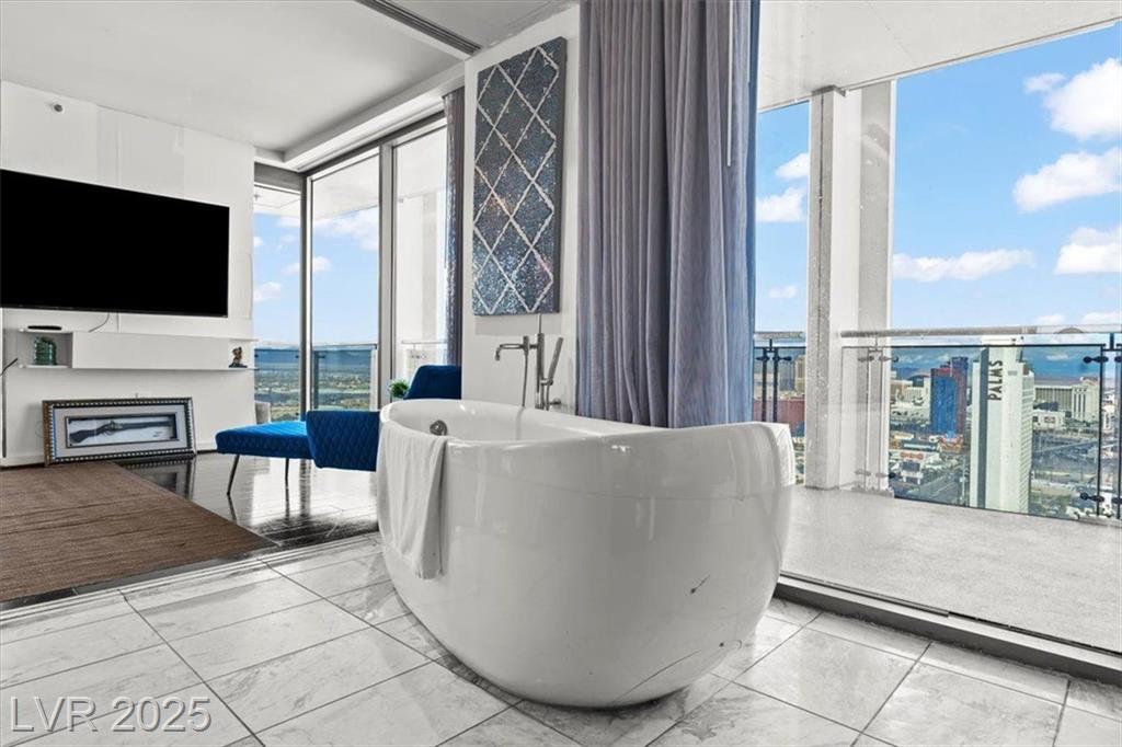 INCREDIBLE 34TH FLOOR WITH STRIP VIEW FROM THE DOUBLE WRAP AROUND BALCONY! FORMER UNIT OWNER ONCE BY MARIO ANDRETTI, HIGHEST FLOOR WITH 1 BEDROOM COMBO WITH STUDIO-CORNER UNIT FACING THE STRIP WITH PANORAMIC VIEW OF THE CIRT AND LAS VEGAS BLVD! COMPLETELY FURNISHED AND UPGRADED! THIS IS A PRIVATE UNIT WITH STUDIO COMBINED NOT IN THE RENTAL POOL! AIRBNB APPROVED PROPERTY! STAINLESS APPLIANCES, ITALIAN MARBLE BATHS, STAINLESS CABINETS AND ISLAND, FIREPLACE IN MAIN, JACUZZI TUB, AND SO MUCH MORE! THIS WILL NOT LAST LONG AT THIS PRICE WITH WRAP AROUND FULL BALCONY SUITE AND CONNECTING STUDIO UNIT-ALL FULLY FURNISHED! SELLER MAY CARRY WITH SUBSTANTIAL DOWN! CALL LISTING AGENT FOR ALL APPOINMENTS!