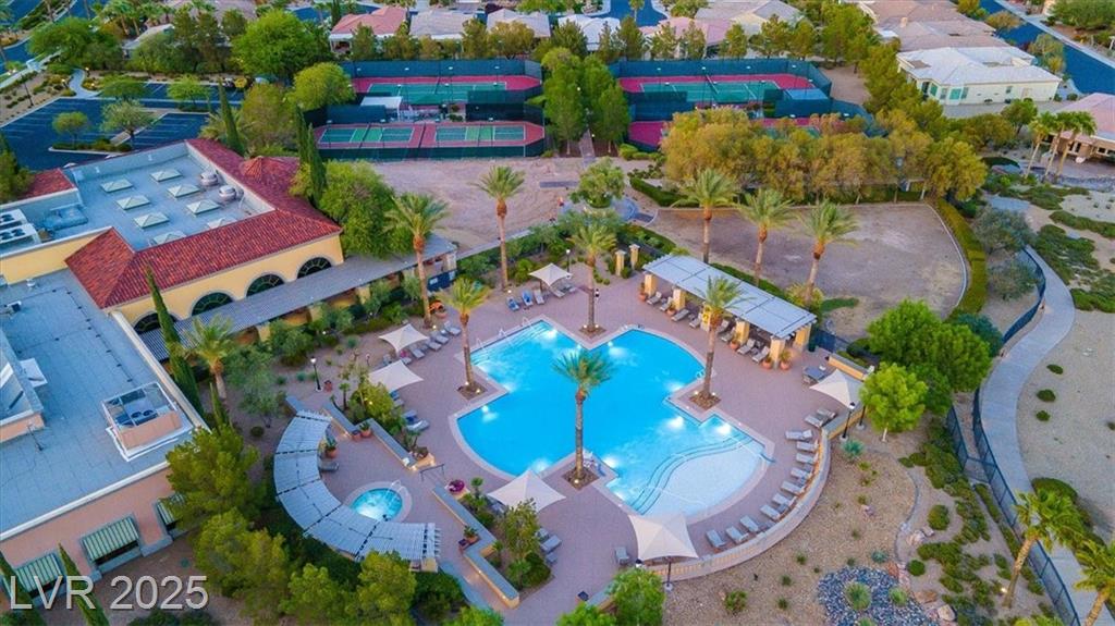 Enjoy sweeping mountain views, beautiful sunsets from the private backyard. This elegant single-story home in the exclusive 55+ guard-gated community of Siena. This Model 5130 offers 2 bedrooms, 2 bathrooms, and a den. Centrally located with easy access to shopping at Downtown Summerlin, freeways, and the world-class entertainment of the Las Vegas Strip. Elegant curb appeal welcomes you through a private courtyard into an open floor plan featuring custom wood flooring, plantation shutters, and ceiling fans throughout. The gourmet kitchen opens to spacious living areas, perfect for entertaining. The primary suite includes a spa like bath. Enjoy sweeping mountain views, beautiful sunsets from the private backyard. Siena offers resort-style amenities including a clubhouse, fitness center, pools, tennis, pickleball, and championship golf — blending luxury, comfort, and convenience.