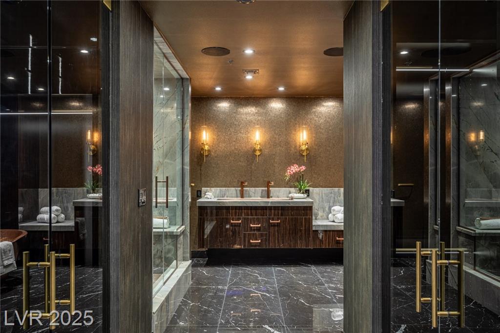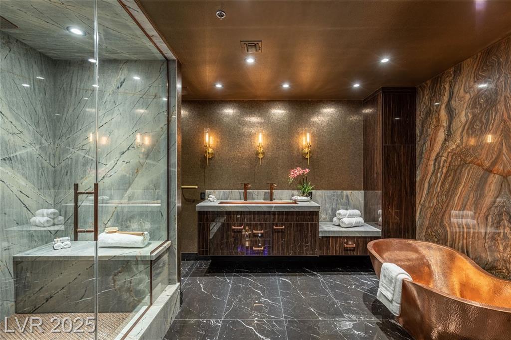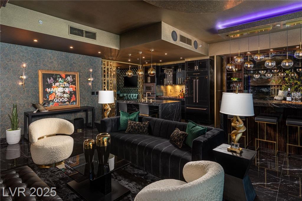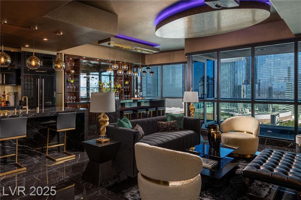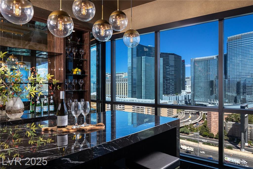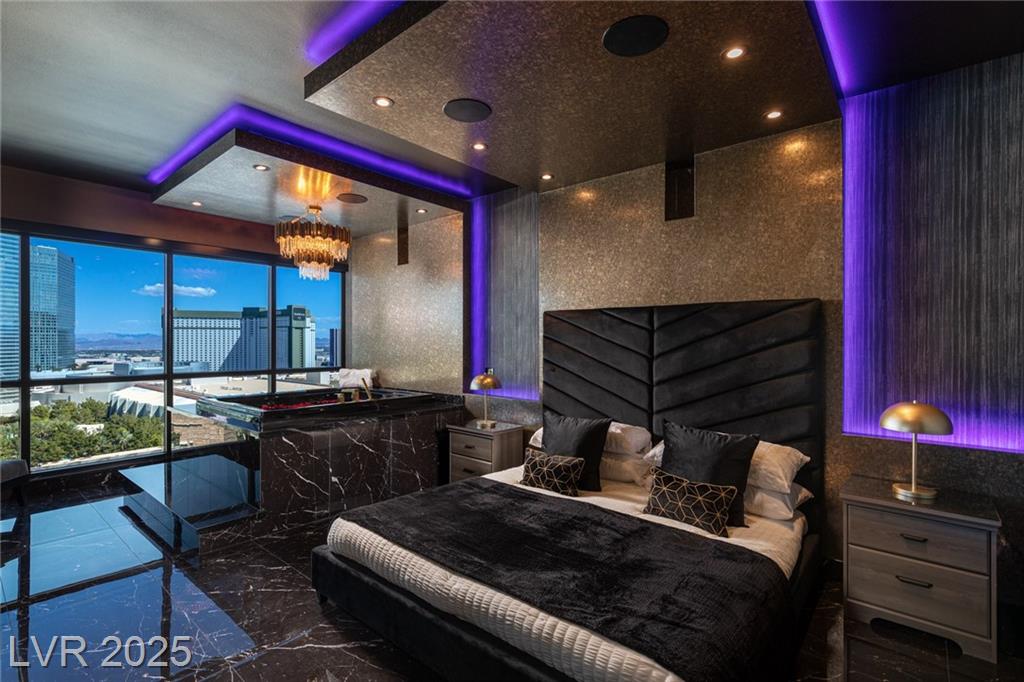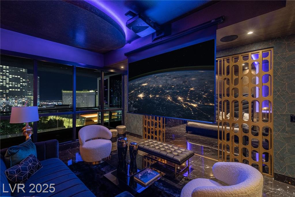 One-of-a-kind custom residence at Panorama Towers is equipped with all the luxuries one could ask for. Interiors completed by top world-class interior designer firm. This home gives five-star hotel quality vibes the moment you step inside. Breathtaking 180 degree Las Vegas Strip views from balcony. Nothing in this unit was left untouched. Top-of-the-line custom features include new sought-after stone flooring, counters and backsplashes, smart home automation, two drop-down screens with projectors, custom cabinets and closet systems, new plumbing and lighting fixtures, window and wall treatments, distributed audio and more. Includes 2 parking spaces and 1 storage space. Living in Panorama Towers, you’re ideally situated, just 1.5 miles from T-Mobile Arena and Allegiant Stadium and walking distance to the world famous Strip. Residents enjoy the best building features including a guard-gated entrance, fitness center, recreational room, resort-style pool and 24 hour limo service.