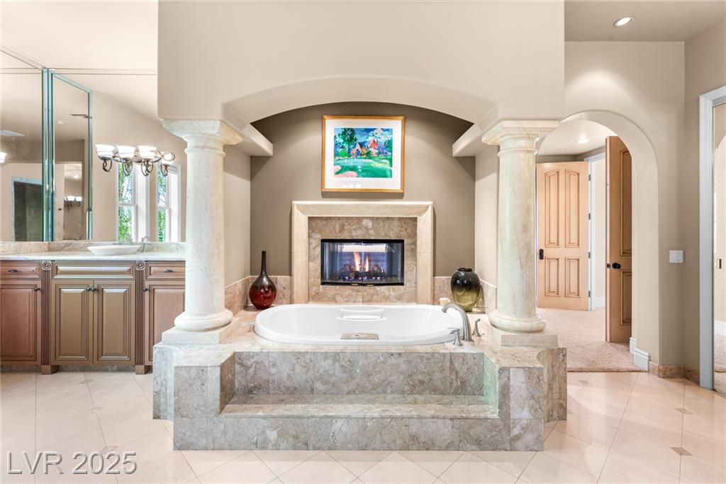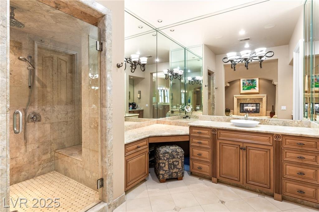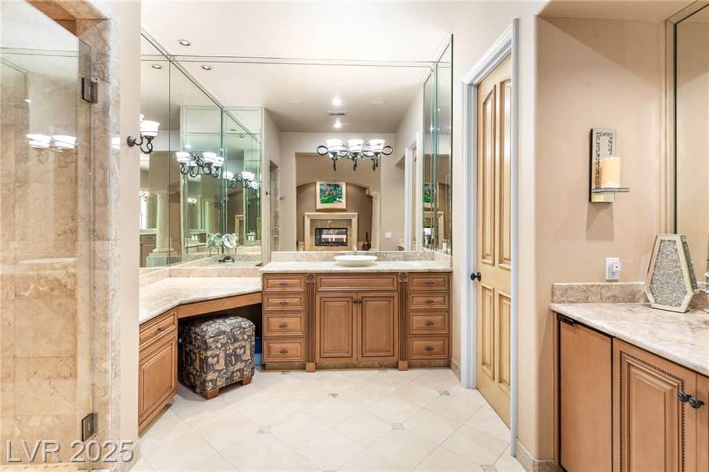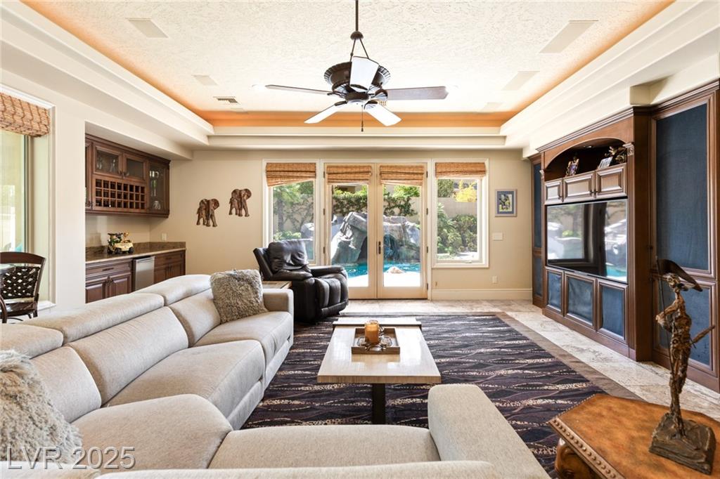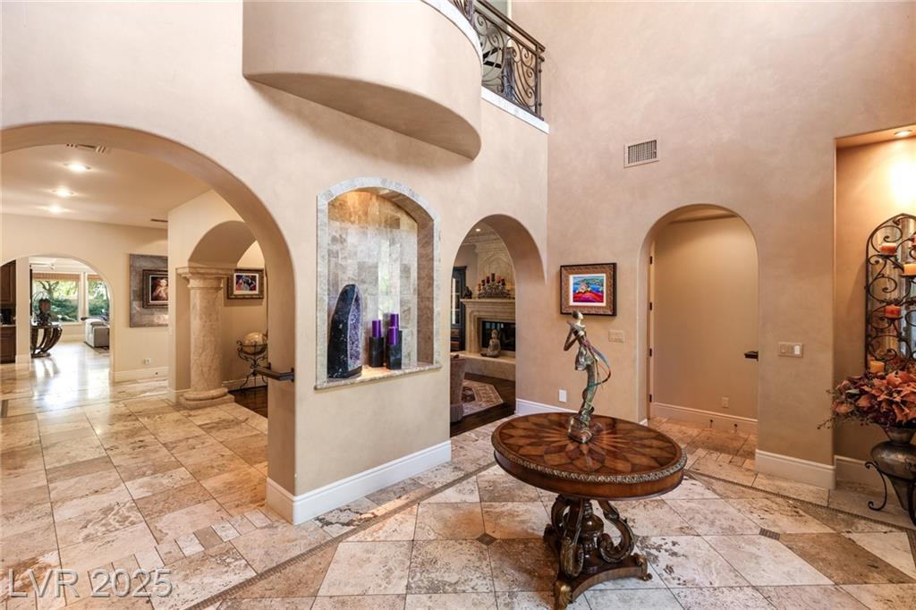 An ode to timeless European luxury within the coveted gates of Canyon Fairways. This custom Tuscan-inspired estate marries old-world artistry with modern sophistication, enveloping every space in warmth, elegance, and grandeur. From its stately curb appeal surrounded by lush gardens to its intricate stone and ironwork, the home makes a commanding first impression. Inside, soaring ceilings and luminous natural light accentuate exquisite craftsmanship throughout. The chef’s kitchen boasts professional-grade appliances, custom cabinetry, and a seamless connection to expansive living and dining areas ideal for refined entertaining. Resting on one of the community’s larger lots, the backyard reveals resort-style serenity with pool, spa, outdoor kitchen, and a rare green lawn. The primary suite is a private sanctuary with spa-inspired bath and terrace overlooking the grounds — a true statement of European refinement enduring class and exquisite craftsmanship.