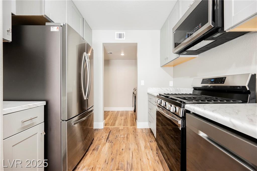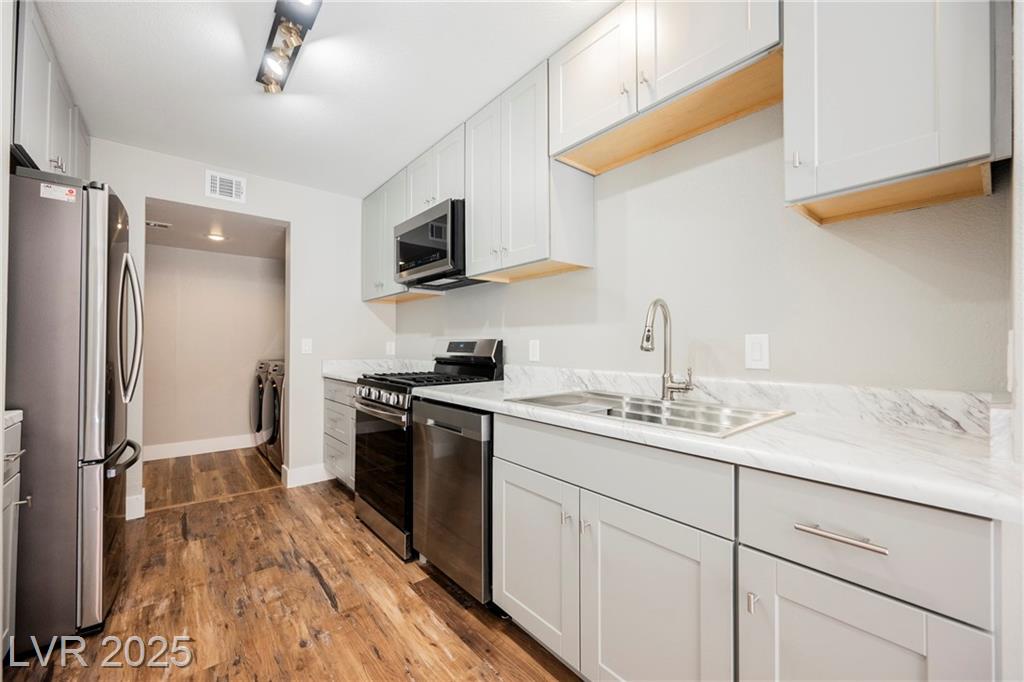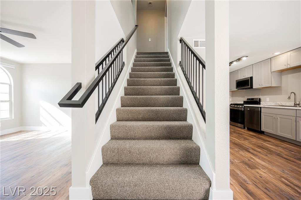 Welcome home to this beautifully remodeled and modern 3-bedroom, 2.5-bath townhome located in a secure, gated community. The spacious kitchen features stainless steel appliances, including an oversized refrigerator, microwave, and modern sink, along with a washer and dryer for your convenience. This inviting home offers a bright, open layout with a cozy fireplace, a private backyard perfect for relaxing or entertaining, and an extra-wide driveway providing added parking convenience.Enjoy access to a sparkling community pool and the peace of mind that comes with gated living. Ideally situated near several parks, shopping centers, the Golf Course, Rainbow Library, and Mountain View Hospital — everything you need is just minutes away.