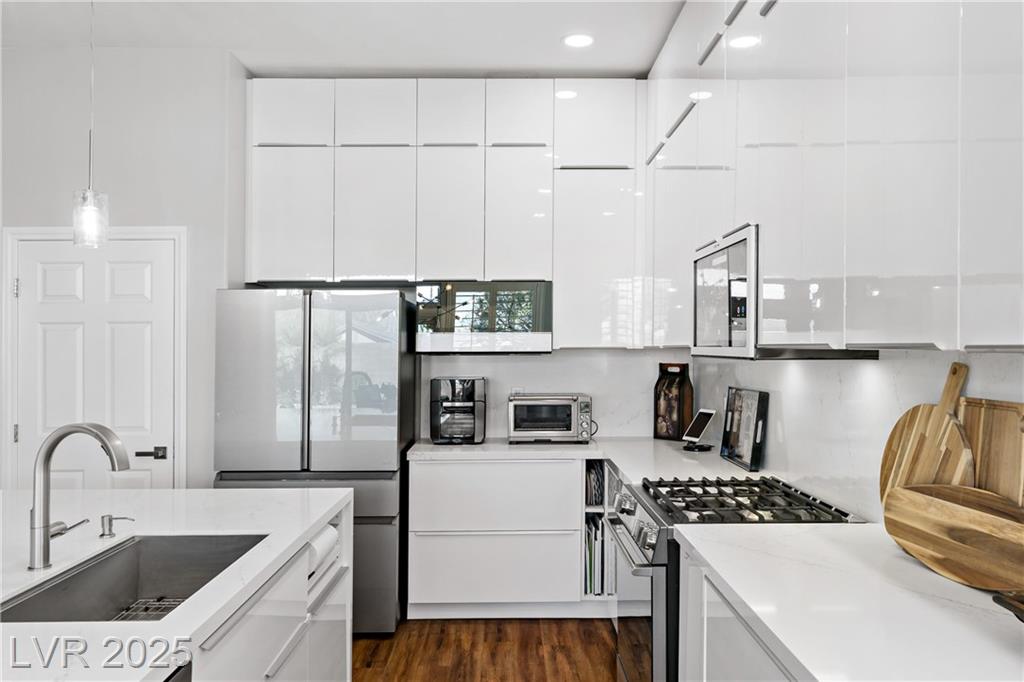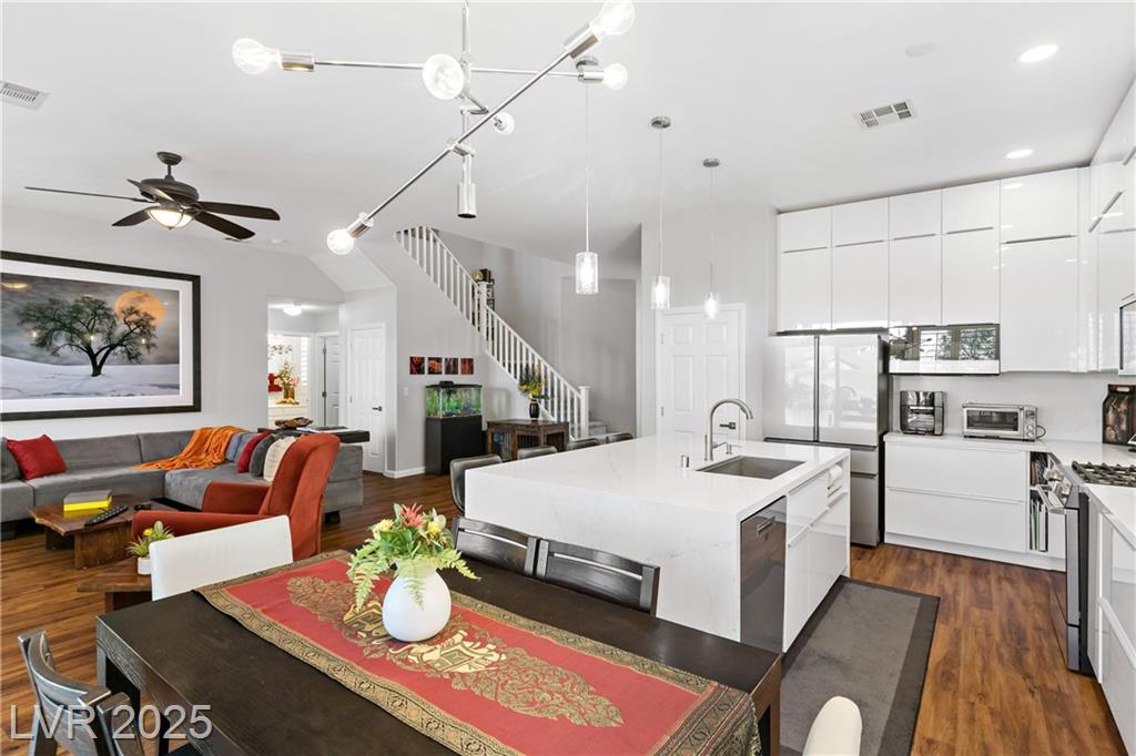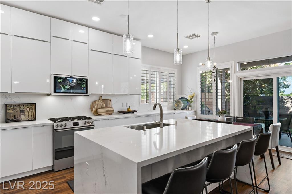 Stunning newly remodeled 5 bed, 3 bath, 3-car garage Granite Hills home, on premium lot w/ oversized deck & unobstructed strip views! Walking distance to Coronado HS, Shopping, Fine Dining & more! New upgrades: waterproof LVP flooring, stain-resistant carpet w/ spill-safe padding & upgraded sliding doors. Gourmet kitchen boasts white double-stacked cabinets, oversized quartz waterfall island w/ storage, quartz counters & backsplash, drawered cabinets w/ additional accessory drawers & pull-outs, GE Cafe Series appliances & GE digital hub/vent system. Plus, extra-large pantry & separate office space, entertainment wall cabinets, primary bath/closet remodel w/ built-in wardrobe cabinet, dual vanities, tiled shower/floors/walls, office wall cabinets, overhead garage storage, water softener. EV 30A charging outlet, lighting w/bluetooth speaker, xlarge mirrored vanity cabinets, new paint in and out, plantation shutters & PAID OFF solar w/ 25 Panasonic solar panels & warranty through 2045!