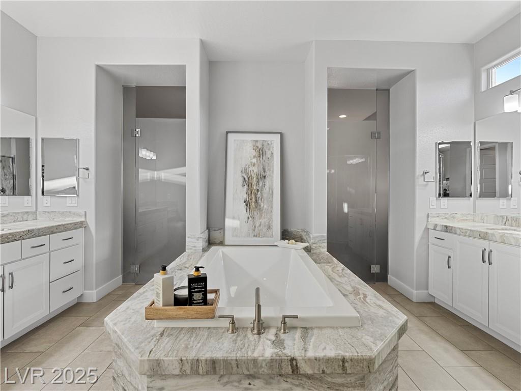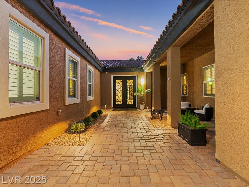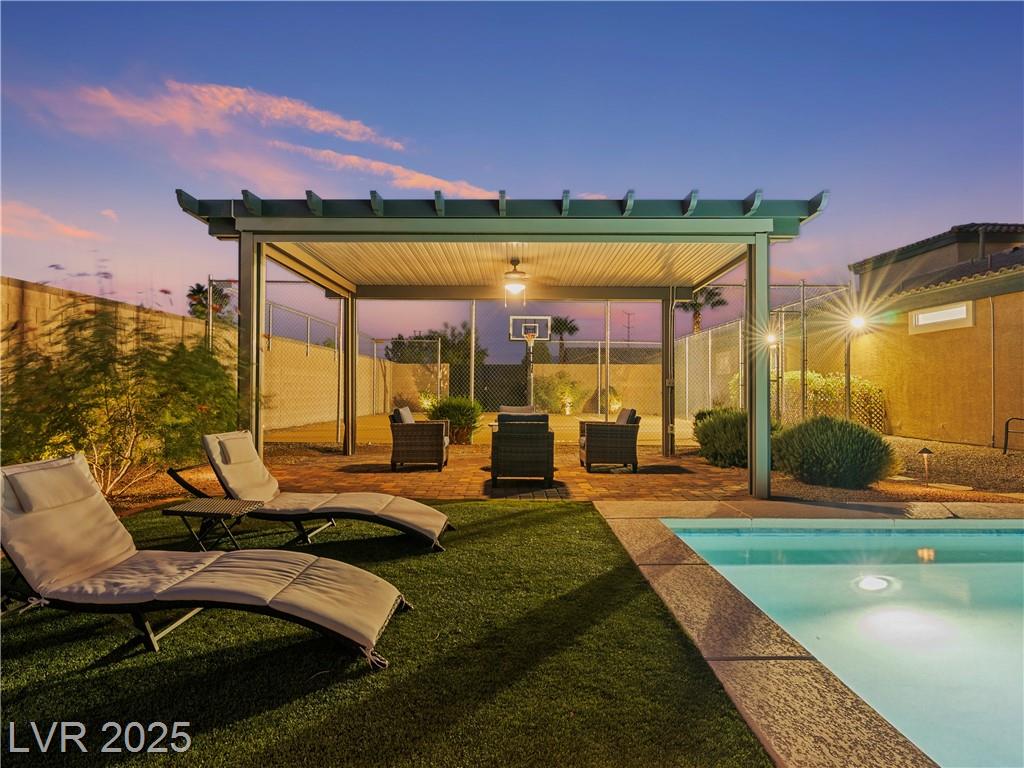 Stunning estate on a privately gated half acre lot. This property has NO HOA!! It is located in the Lone Mountain corridor. This home offers everything you can imagine: Private Gated Entry, RV Parking, gated courtyard & resort-style outdoor living w/ heated self-cleaning pool/spa, stucco pavilion w/ outdoor kitchen, separate pergola w/ motorized-shade & fireside lounge, mini put golf, full-backyard extended pavers & gated ½ basketball court. Interior features include leathered marble countertops throughout, Electrolux stainless steel appliances, soft-close cabinetry w/ pull-out drawers, an oversized kitchen island w/ extensive storage/prep capacity. A smart-home data center with indoor/outdoor audio/security system. Five bedrooms are en-suite. The primary wing features a spa-inspired dual-shower system, deep soaking tub, dual vanities, dual closet entries & couture dressing mirror. A rare resort-caliber estate designed for elevated daily living and unforgettable entertaining.