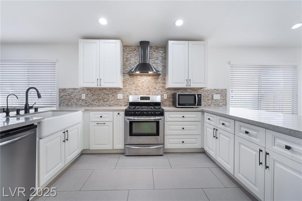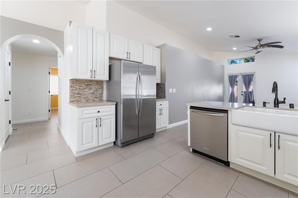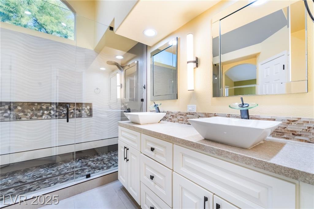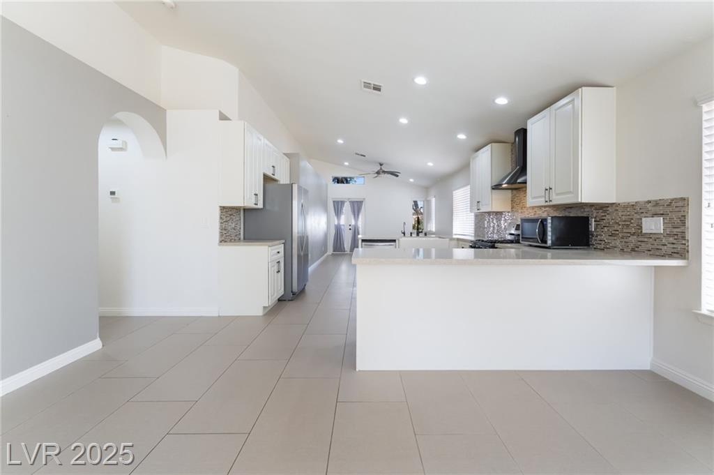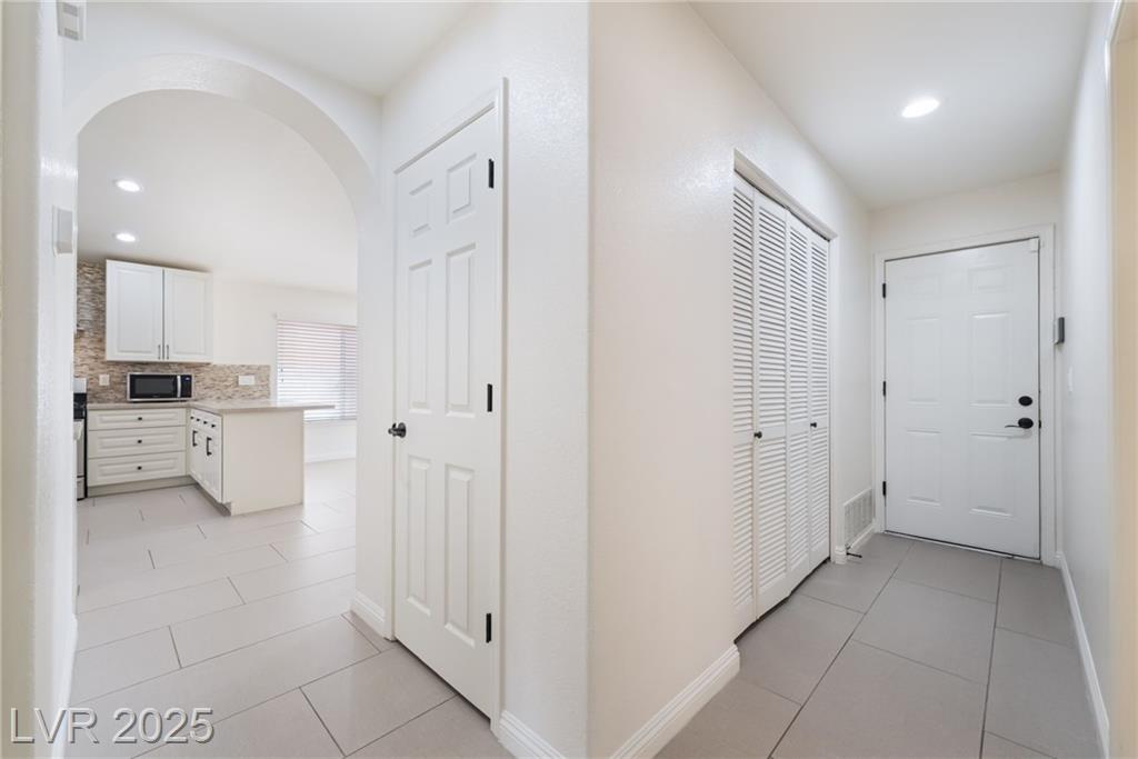Experience modern elegance in this fully renovated single-story residence, perfectly situated just minutes from Downtown Summerlin and premier shopping, dining, and entertainment. This home offers three spacious bedrooms and two beautifully updated bathrooms, complemented by a two-car garage. Vaulted ceilings in the main living area and primary suite create an open and airy ambiance, while brand-new tile flooring and fresh paint throughout add a sleek, contemporary finish. The gourmet kitchen has been thoughtfully redesigned with new cabinetry, quartz countertops, a farmhouse sink, a stylish backsplash, and stainless steel appliances, making it both functional and visually striking. The primary bathroom features a custom walk-in shower and dual-sink vanity, and the guest bathroom has also been fully upgraded to match the home’s sophisticated style. This is a courtesy listing. Please contact the owner directly for inquiries or application details.