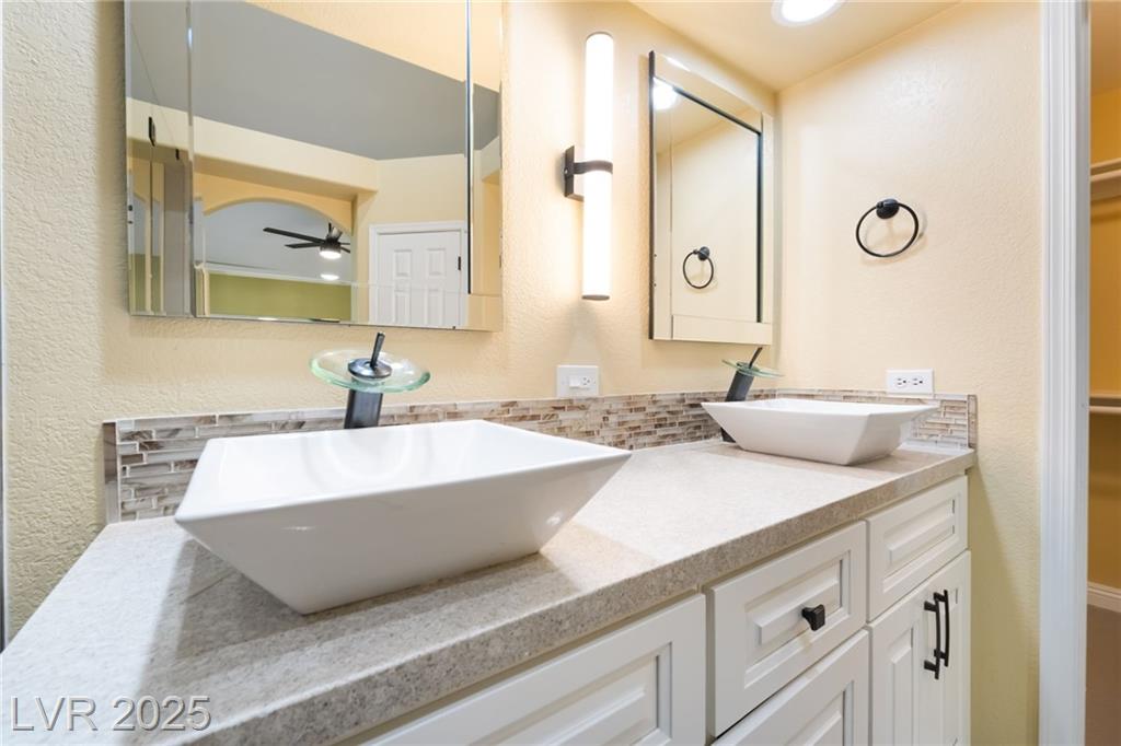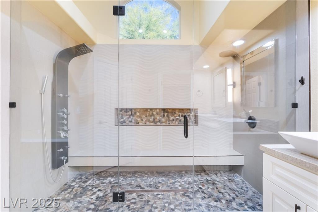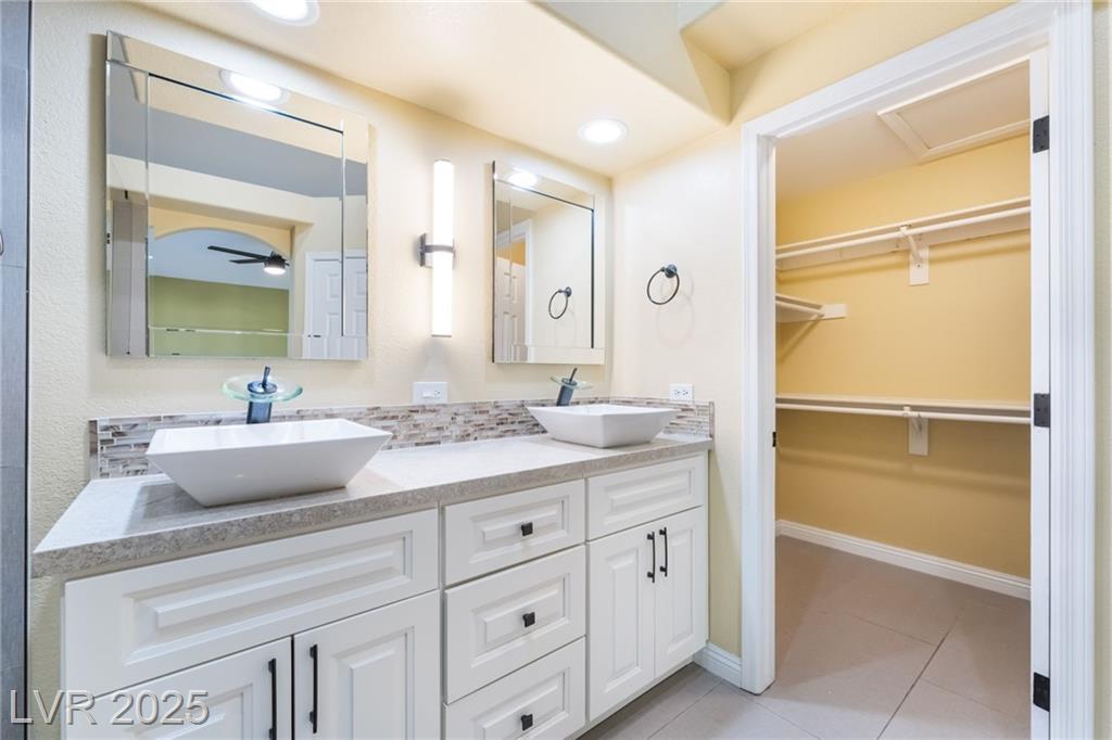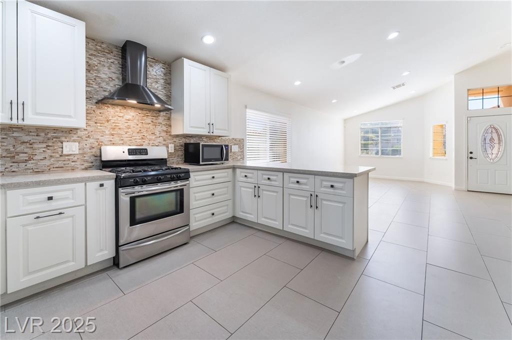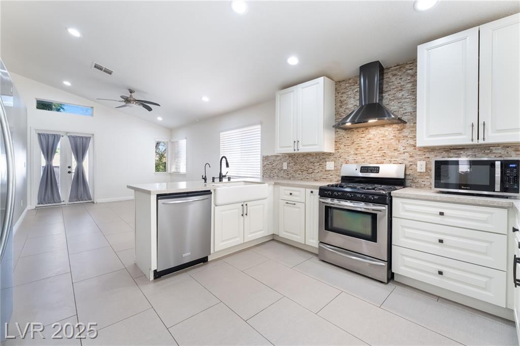 Experience modern elegance in this fully renovated single-story residence, perfectly situated just minutes from Downtown Summerlin and premier shopping, dining, and entertainment. This home offers three spacious bedrooms and two beautifully updated bathrooms, complemented by a two-car garage. Vaulted ceilings in the main living area and primary suite create an open and airy ambiance, while brand-new tile flooring and fresh paint throughout add a sleek, contemporary finish. The gourmet kitchen has been thoughtfully redesigned with new cabinetry, quartz countertops, a farmhouse sink, a stylish backsplash, and stainless steel appliances, making it both functional and visually striking. The primary bathroom features a custom walk-in shower and dual-sink vanity, and the guest bathroom has also been fully upgraded to match the home’s sophisticated style. This is a courtesy listing. Please contact the owner directly for inquiries or application details.