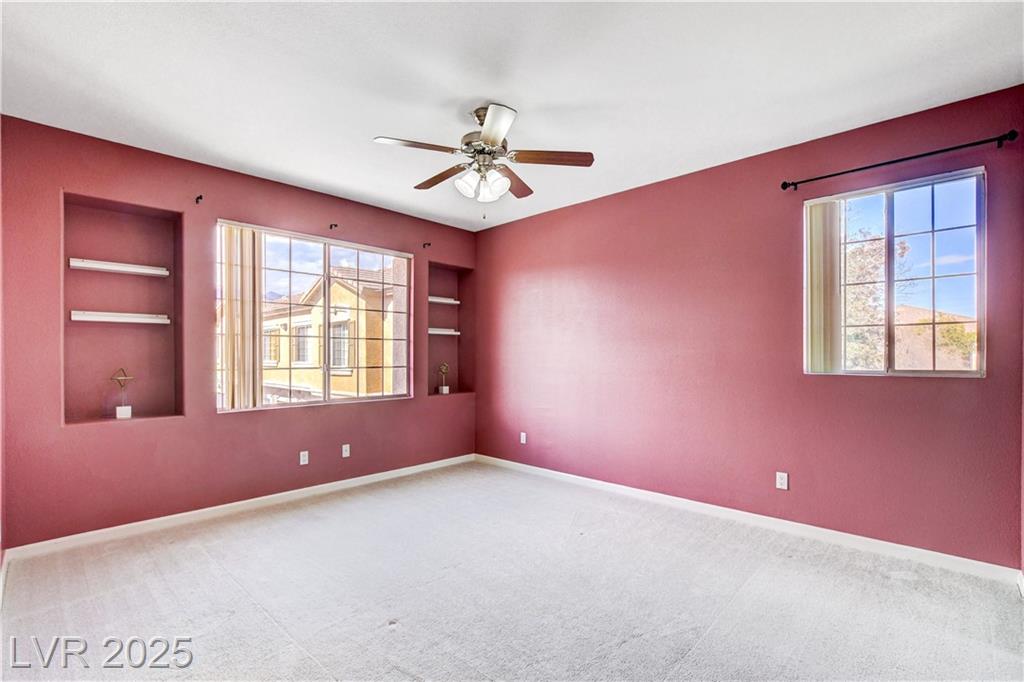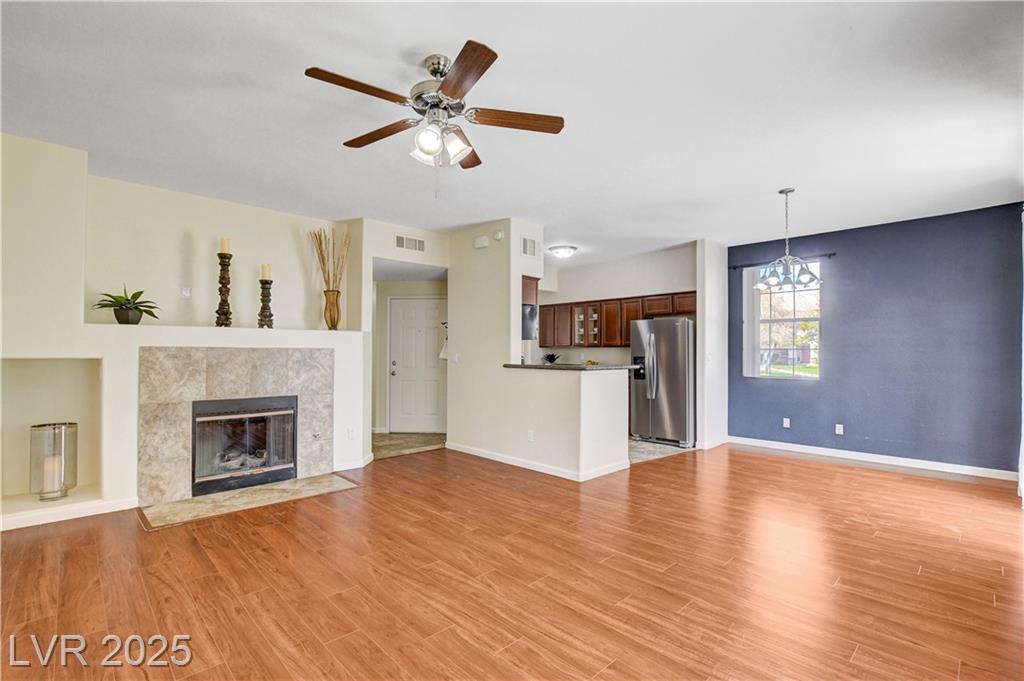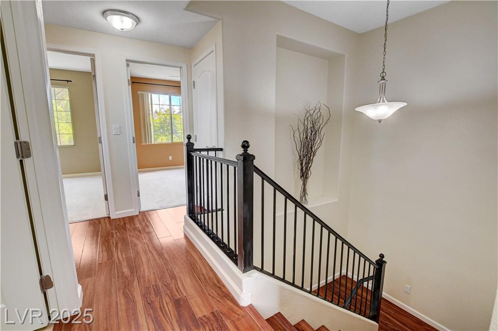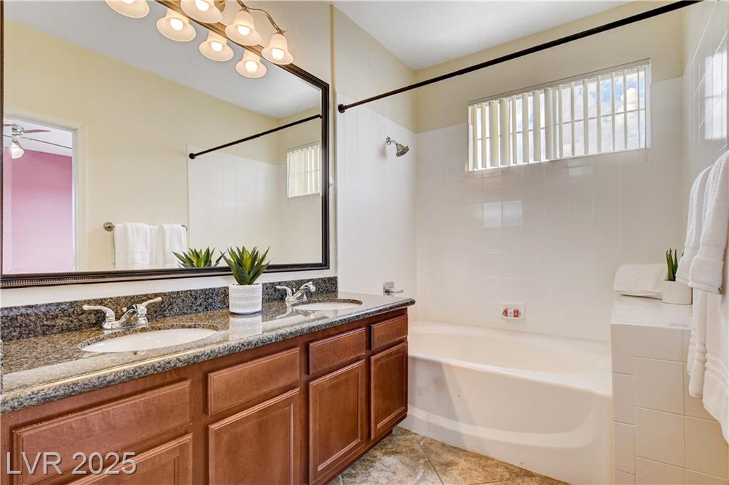 Gorgeous two-story condo available in highly desired Summerlin community rich with amenities. Gated neighborhood with over 1400sqft of living space, 3 bedrooms, and 2.5 bathrooms & a 2-car garage! Kitchen features a breakfast bar, granite countertops, tile flooring & is open to the great room with cozy fireplace. Upstairs primary bedroom includes a walk-in closet & an additional mirrored door closet, dual sinks in the primary bathroom, and tub/shower combo. Close access to the Carlisle community's pool, clubhouse and fitness area.