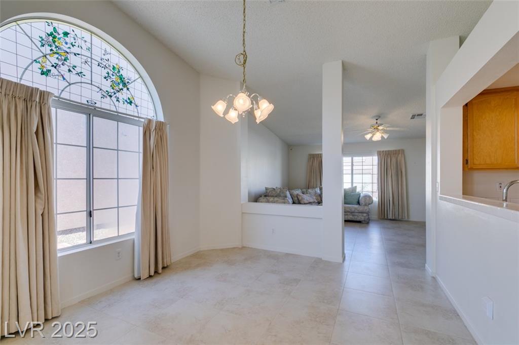 Great opportunity to own a home in fabulous Allegro Subdivision great area in Henderson close to absolutely everything....single story convenience with large living room with vaulted ceilings...separate Dining area off Kitchen with cathedral ceilings...gorgeous tiling throughout this open & area floor plan with volume ceilings and elegant arched accents...Kitchen as ample oak cabinets and breakfast bar overlooking dining area, back yard has fruit trees and covered patio to chill in after a hard day or entertain friends and family...large windows allow plenty of natural light and great views...show & sell