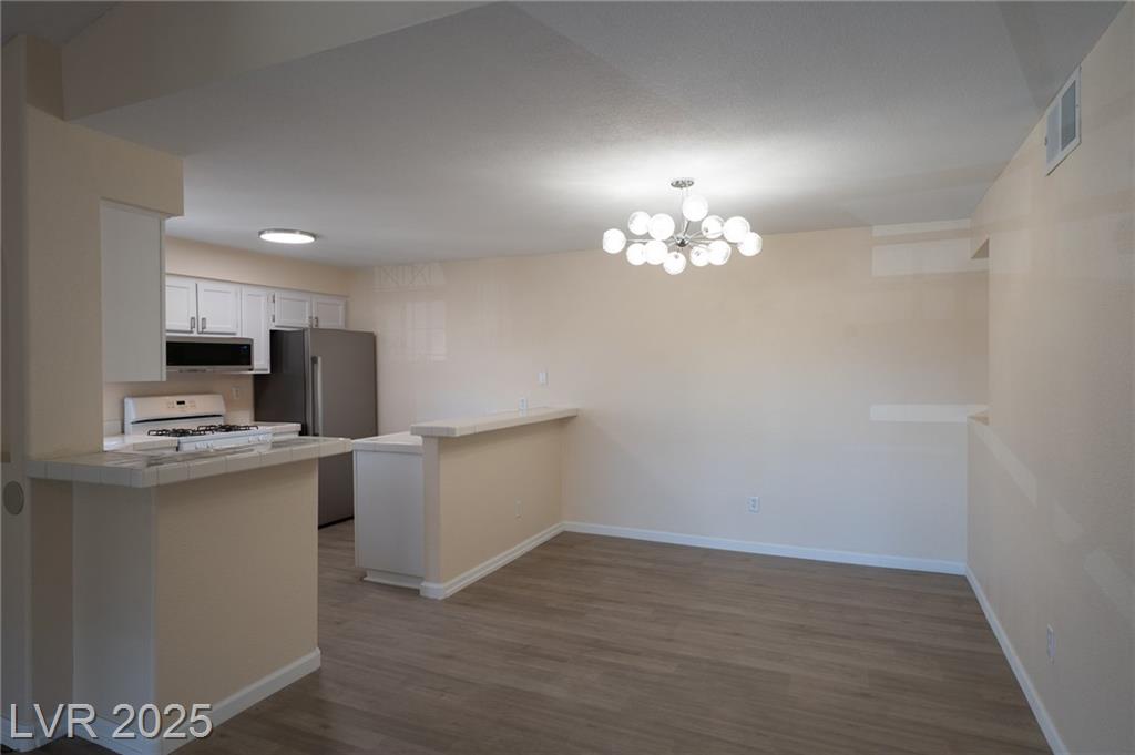 **Fantastic Green Valley Location!** This charming 2-bedroom, 2-bath condo offers a spacious open feel with vaulted ceilings and plenty of natural light. The living room features a cozy gas fireplace, while the kitchen boasts a **new gas stove, dishwasher, microwave and stainless steel refrigerator** The greatroom, dining area, kitchen and hallway feature stylish luxury vinyl plank wood floors, complemented by neutral carpet in bedrooms for comfort. Both bedrooms offer mirrored wall closets and ceiling fans with lights. The **primary suite includes dual sinks and a tub/shower combo**, while the **second bath has been beautifully remodeled with a walk-in shower**. Additional upgrades include a **new water heater** and a **security screen door**Enjoy resort-style living with **3 sparkling community pools**, one located just steps from the unit near the clubhouse. Conveniently located close to shopping, dining, and freeway access—this Green Valley gem won’t last long!