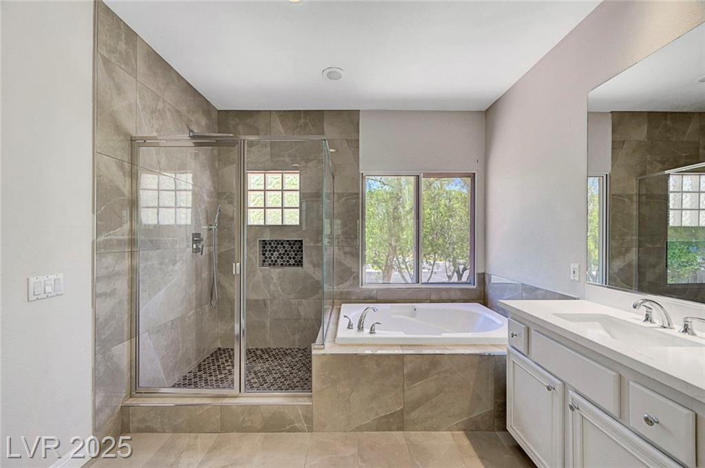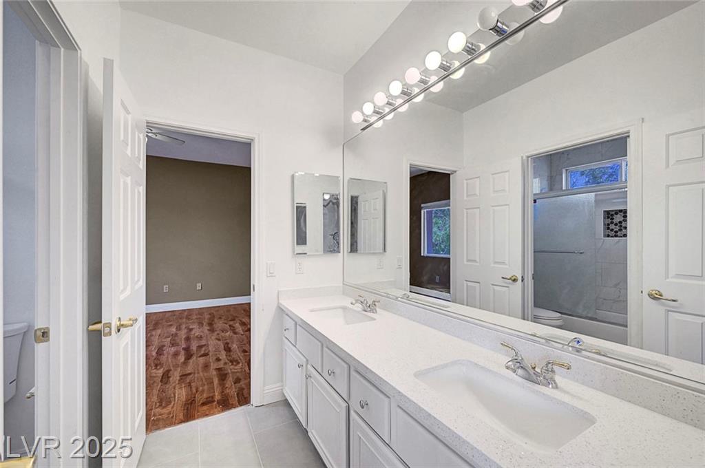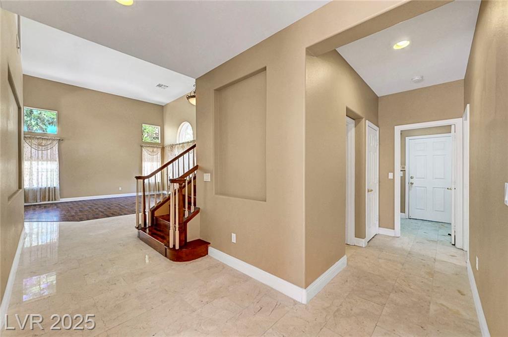 Discover this stunning 5-bedroom, 4.5-bath home, guest bedroom downstairs with full bath and Loft upstairs. Four bedrooms upstairs including master suite with baths'. 'The property is in the exclusive Virtually Guard-Gated Talton Pointe community of Summerlin. Boasting over 3,460 sq ft of elegant living space, this home features modern, recently updated bathrooms. The spacious layout offers timeless finishes, open concept living, and pride of ownership throughout. New exterior paint, custom drapes, marble floors downstairs, epoxy flooring and extra storage in garage. Situated on a massive 12,200 sq ft lot—one of the largest in the subdivision—with mature landscaping and plenty of space to add a pool or custom backyard retreat. Conveniently located just minutes from top-rated schools, parks, shopping, dining, the Las Vegas Ballpark, and Red Rock Casino. Rare opportunity in one of Summerlin’s most sought-after neighborhoods!
