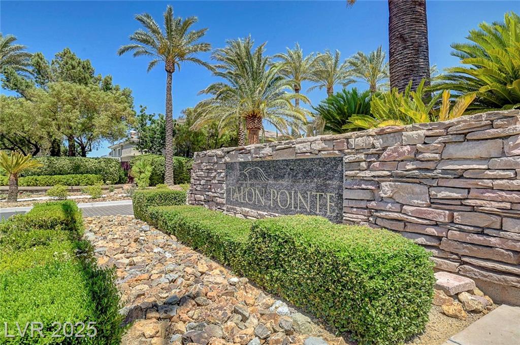 From Summerlin Parkway, exit Town Center Drive and head south. Turn left on Anasazi Drive into the Talon Pointe gated community. Once inside the gate, turn left onto Buteo Woods Lane. The home will be on the left corner.