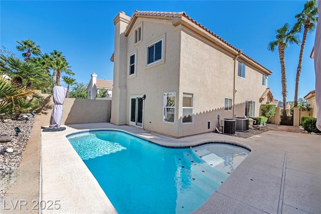 SUMMERLIN 89134, 4 BEDROOMS •NO REAR NEIGHBORS • MOUNTAIN VIEWS • PRIVATE POOL - A rare find in the foothills of Summerlin * Mountain views, privacy and a sparkling pool * No rear neighbors, 2-story with 4 bedrooms (all up), 2.5 baths, and the kind of layout that just makes sense. * Two spacious living areas downstairs: Large living room and separate family room, light-filled dining area, functional kitchen with breakfast bar seating * Butler's pantry with second pantry area for large appliances and more * Andersen windows along entire west-facing side of the home (incl Andersen slider) offer upgraded energy efficiency, long-term peace of mind * (2) A/C units and a new furnace installed ~2+/- years ago * Generous primary suite with mountain views, walk-in closet, dual-vanity bath * 3 additional bedrooms provide space for everyone (or everything). Solar heated pool (5' 5" deep, 10k gallons) positioned to soak up the sun in a serene, easy care yard and no one behind you. Come and see!
