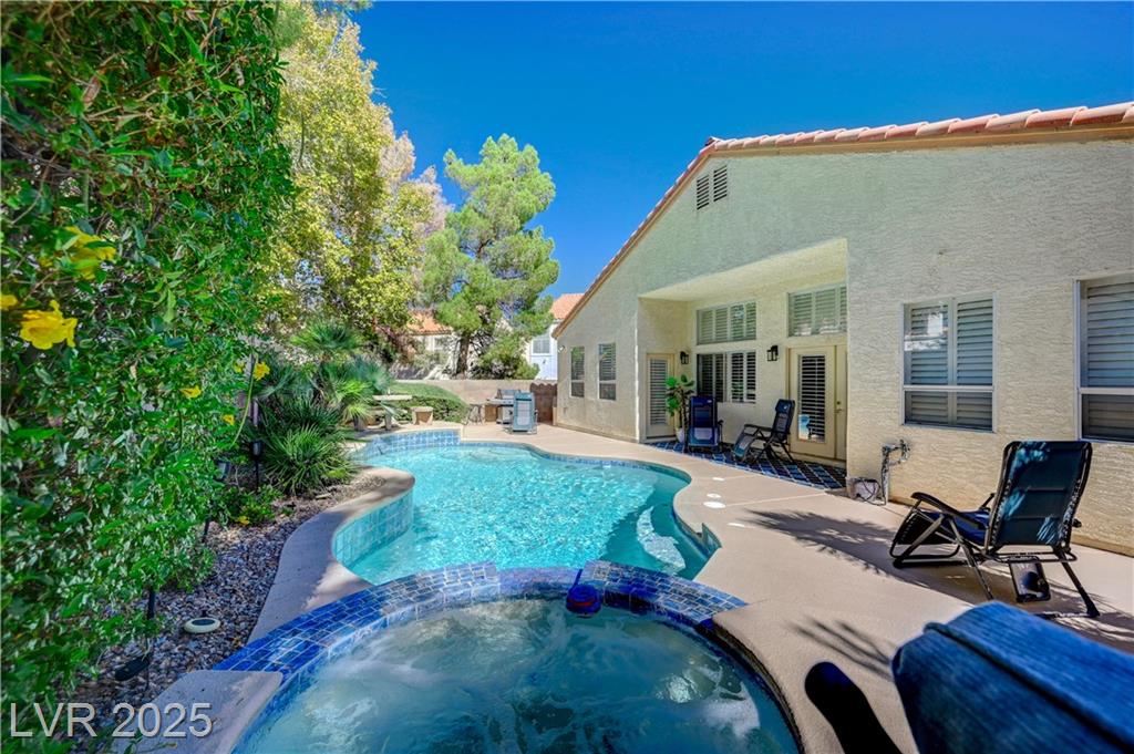 GATED, AMAZING LOCATION IN THE HEART OF GREEN VALLEY. THIS HOUSE SITS ON A RARE LOT WITH GREAT CURB APPEAL AND SPACE. FRONT YARD HAS IMPECCABLE LANDSCAPING WITH MATURE TREES AND A SCULPTED STYLE. THE BACKYARD IS ALL ABOUT RELAXATION AND ENTERTAINING. ONCE THE SUNSETS THE TIKI TORCHES AND OUTDOOR LIGHTING TRANSFORM THE BACKYARD INTO A SPECIAL PLACE. THE NEWLY PAINTED DECK COMPLIMENTS THE BEAUTIFUL RECENTLY TILED POOL AND SPA. NEWER POOL PUMP AND WELL MAINTAINED EQUIPMENT. THE ELEVATED AREAS ARE GREAT FOR GETTING SOME SUN OR DINING. GAS HOOK UP FOR THE OUTDOOR BARBECUES. THE LAYOUT OF THIS HOME WITH ITS HIGH CEILINGS MAKE IT FEEL VERY OPEN AND ELEGANT. POT SHELVES GIVE THE HOME SO MUCH CHARACTER. THE PRIMARY BEDROOM IS PRIVATE AS IT IS ON THE OPPOSITE SIDE OF THE HOME. LAUNDRY ROOM HAS ENORMOUS AMOUNT OF STORAGE WITH CUSTOM CABINETS. A THREE CAR GARAGE GIVES YOU ROOM FOR ALL YOUR TOYS. THE HOME COMES WITH A RING DOORBELL AND EXTERIOR CAMERAS. YOU REALLY NEED TO SEE THIS HOME.